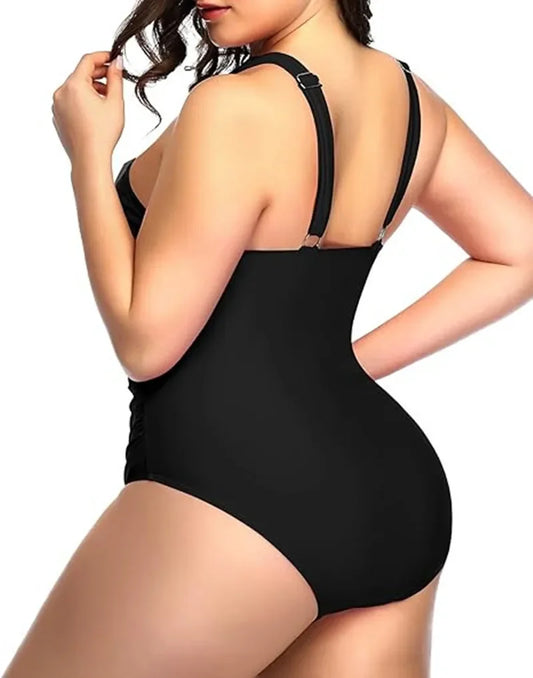 2024 Summer Women Plus Size One Piece Swimsuits Front Cross Tummy Control Black Sexy Swimwear Backless Bathing Suit