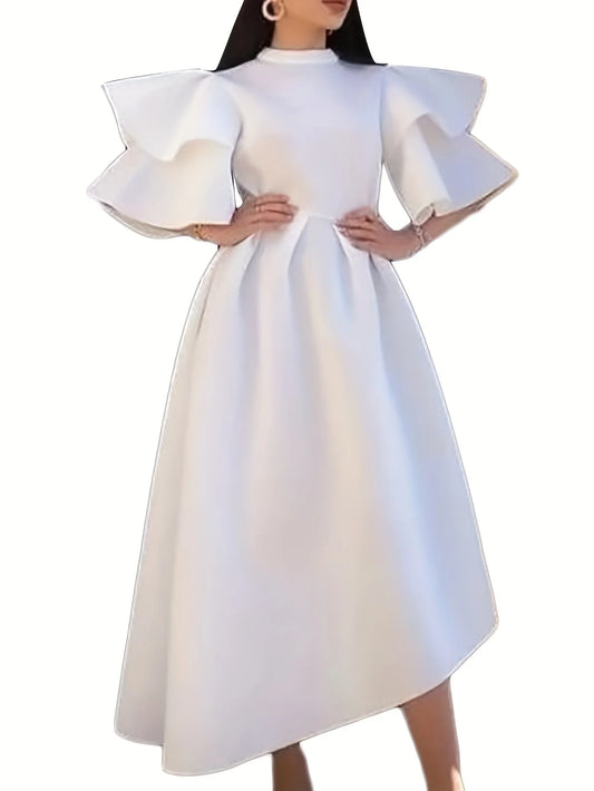 Double-layer ruffled sleeves solid color hem European and American dresses