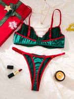 Christmas customized style,Sexy underwear set in green and red, featuring a thong style.Christmas Carnivals Sexy Bra ZA825175