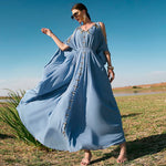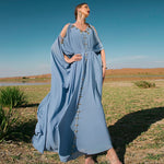 Diamond-Embellished Cold-Shoulder V-Neck Summer Kaftan Abaya – Luxury Evening Party & Eid Gown