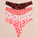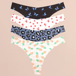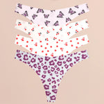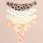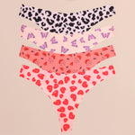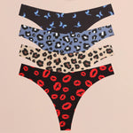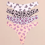 FINETOO Ultra Soft Seamless Graphic Print Thong Set – 4-Pack Stretch Leopard G-Strings for Women