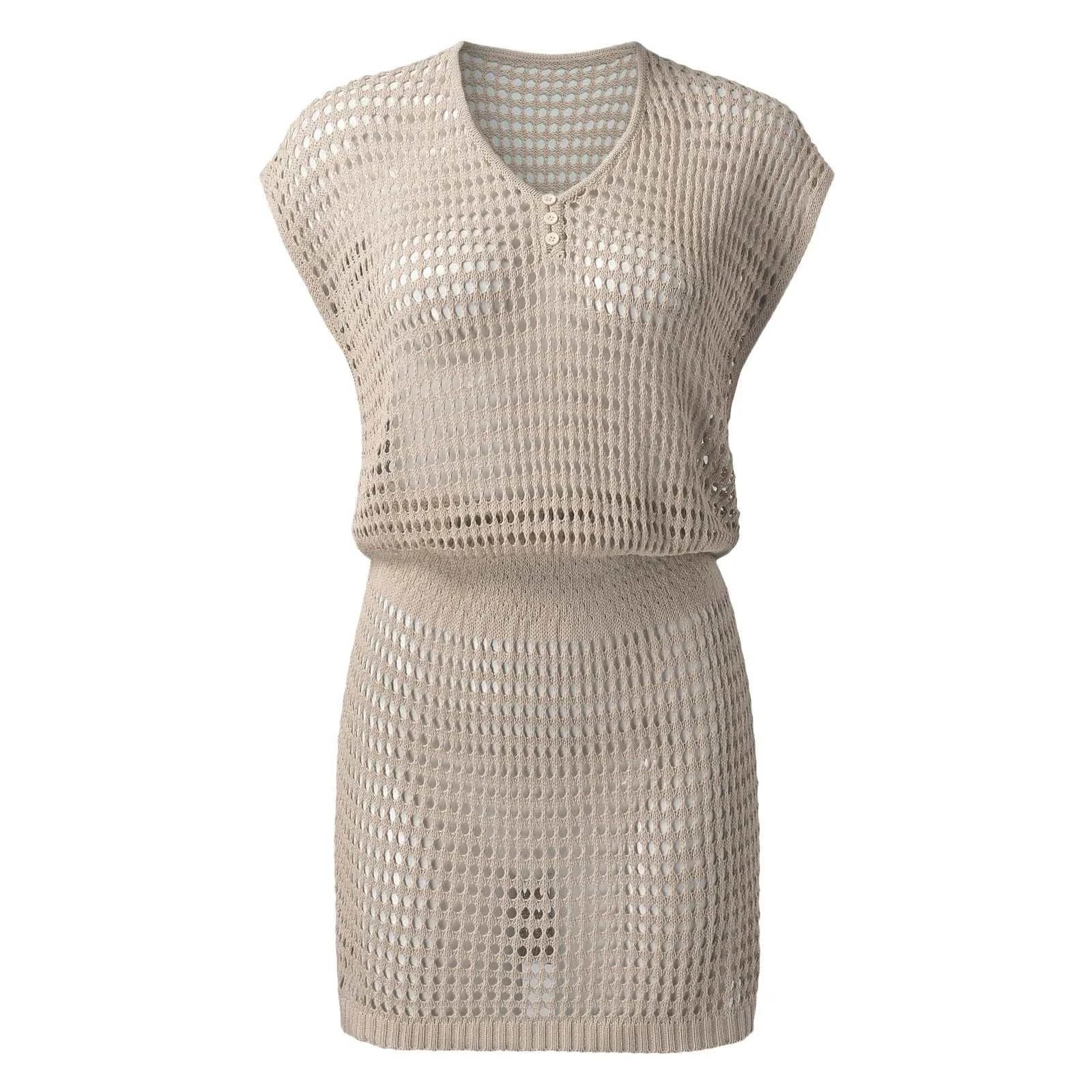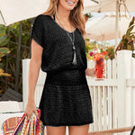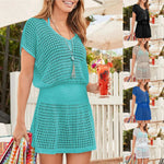 Sexy Hollow Out Beach Dress Women V Neck Crochet Swimsuit Short Sleeve Cover Up Solid Pareo Summer Swimwear Female Bathing Suit
