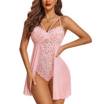 Sexy Lace Nightdress Mesh Transparent Nightgown Solid Women Sleepwear Spaghetti Strap Sleeping Dress Erotic Pajamas Hot Babydoll