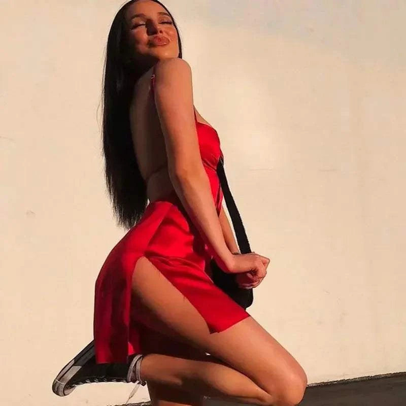 Sexy Satin Slip Backless Mini Dress Fashion Pajamas Women Summer Slit Bandage Elegant Dresses Home Casual Soft Nightdress Gothic