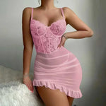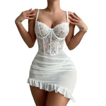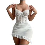 Transparent Underwire Bra Sexy Lace Fairy Lingerie Set Women Exquisite Sexy Lace Pajama Set Delicate See Through Lace Nightdres