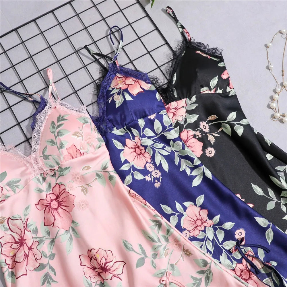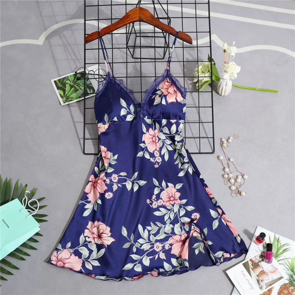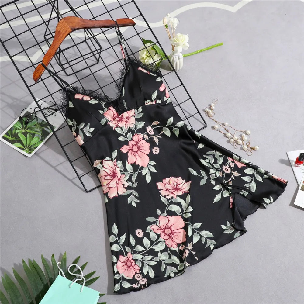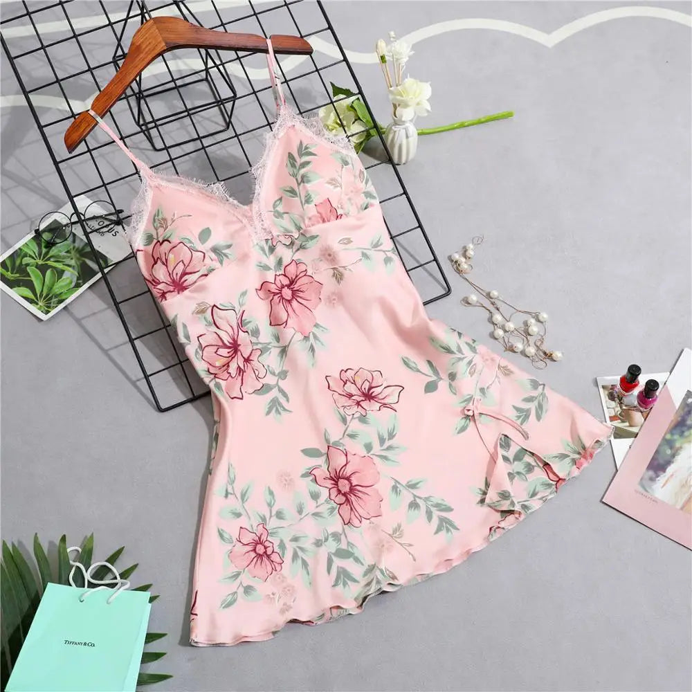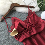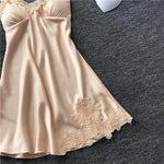 Women’s Silk Satin Lace-Trim Babydoll Nightgown with Chest Pad – Summer Sleep Chemise