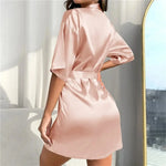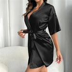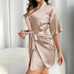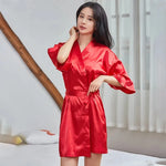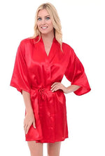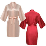 Women Silk Satin Short Night Robe Solid Kimono Robe Fashion Bath Robe Sexy Bathrobe Peignoir Femme Wedding Bride Bridesmaid Robe