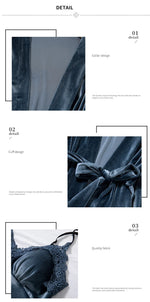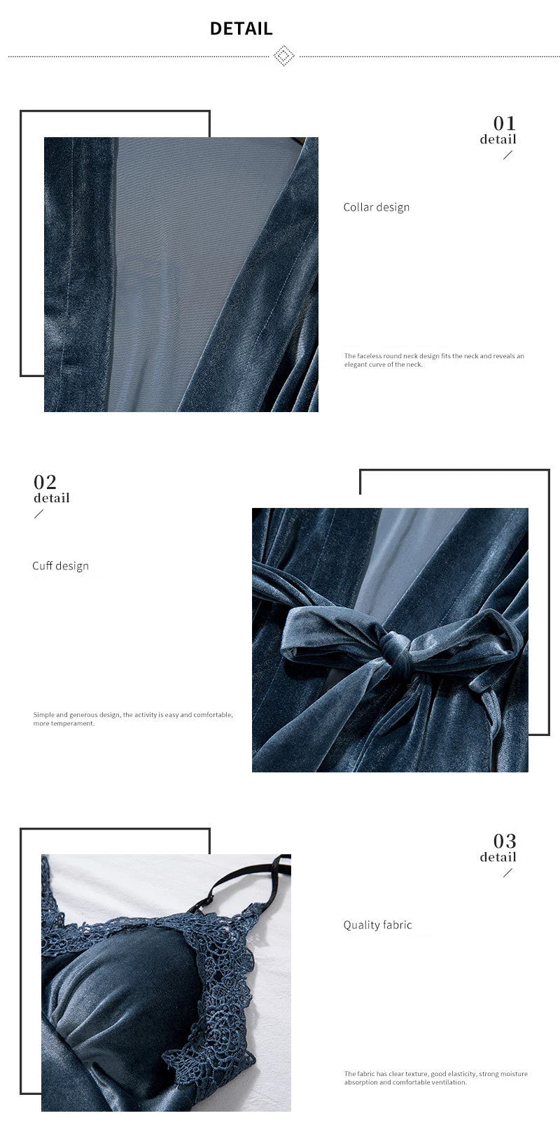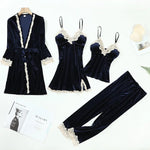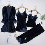 Women’s 4-Piece Velour & Lace Velvet Pajama Set – Long-Sleeve Intimate Homewear