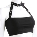 Sexy Punk Choker Halter Crop Top – Backless Slim Fit Gothic Cami Bandeau for Women