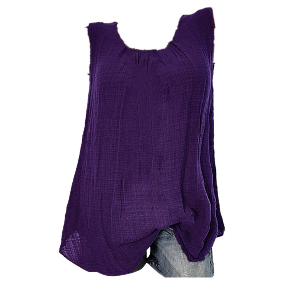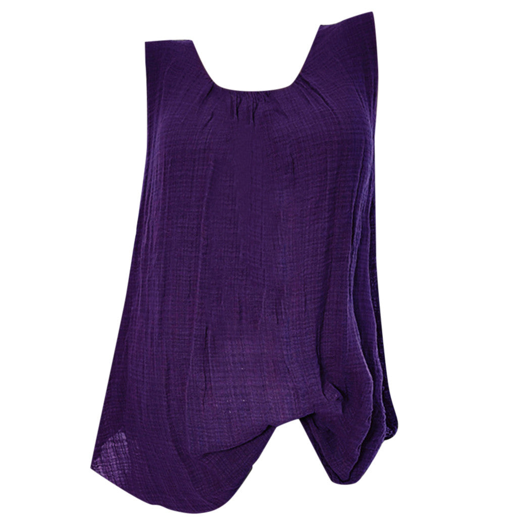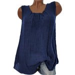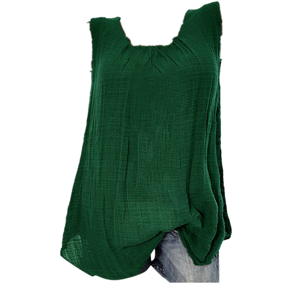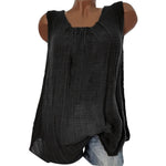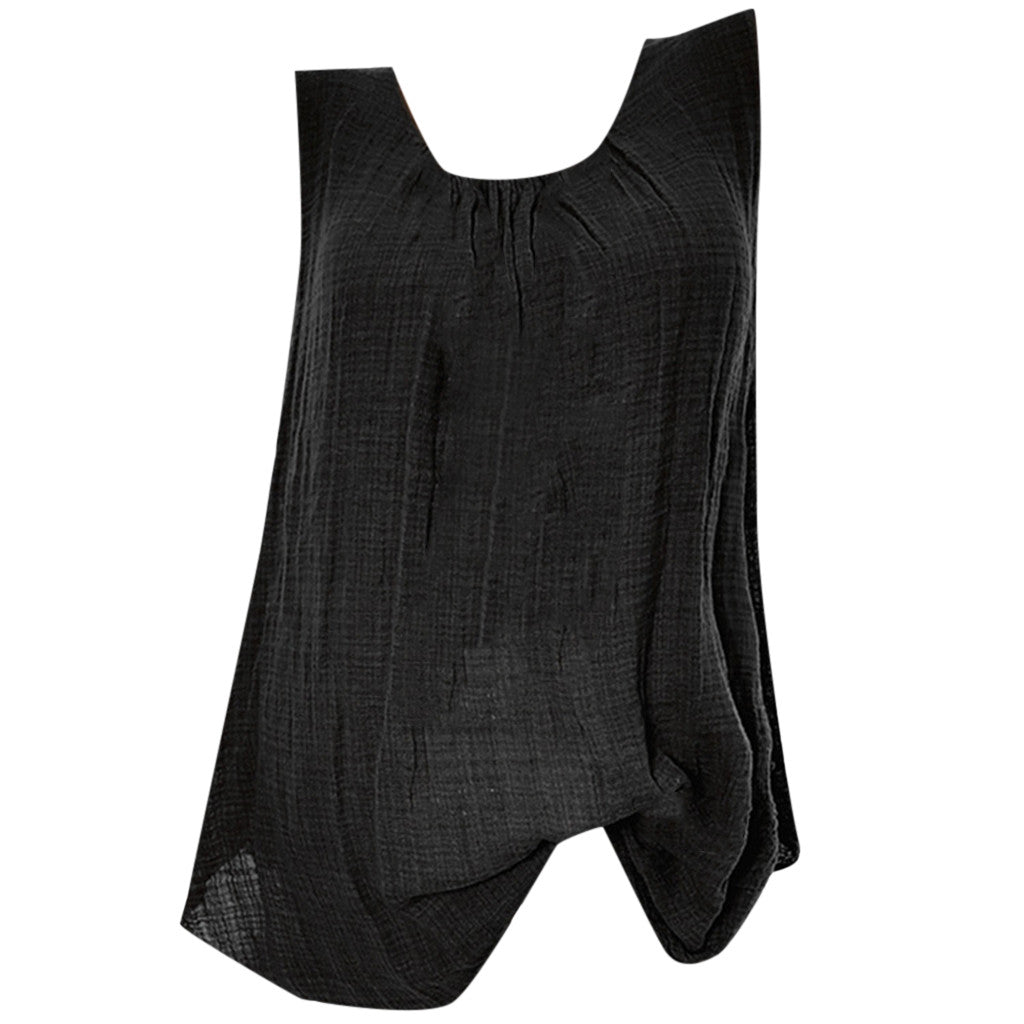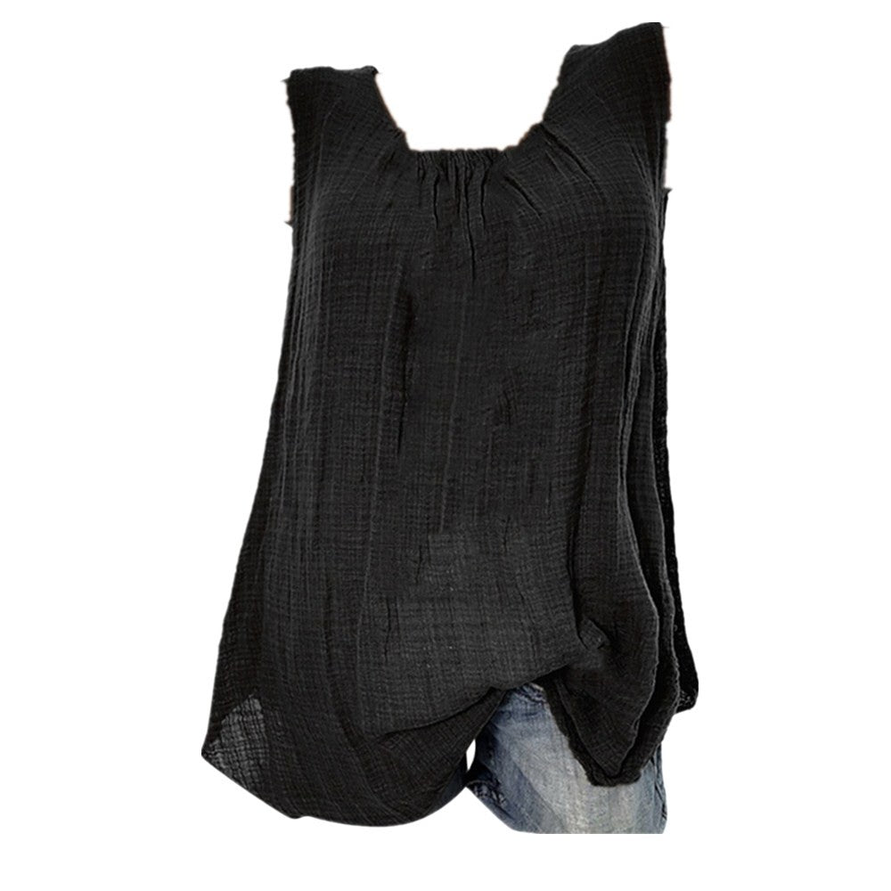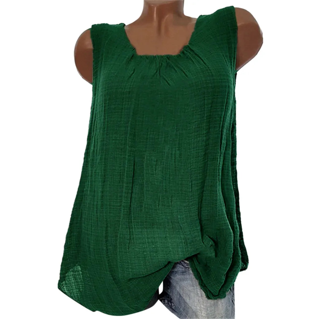 Plus Size Cotton Linen Sleeveless Baggy Tank Top – Casual U-Neck Summer Vest Blouse for Women