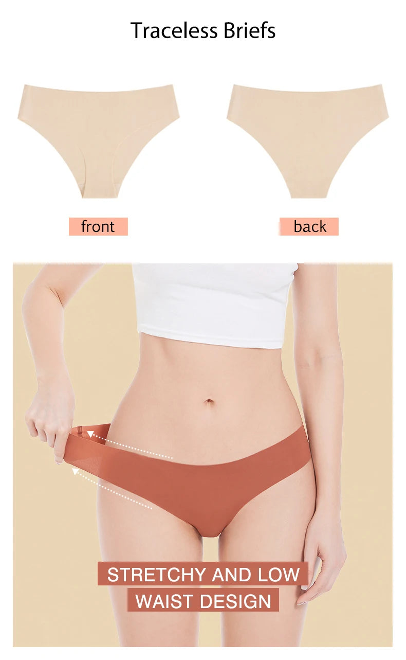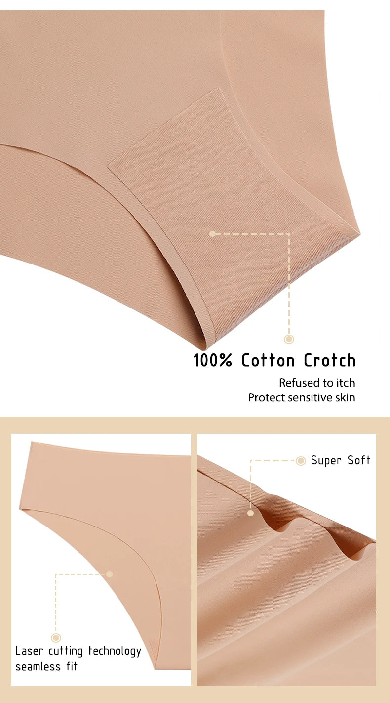 3 Pcs Set Seamless Panties for Women Breathable Low Waist Sexy Underwear Solid Silk Briefs Invisible Seamless Panties Woman