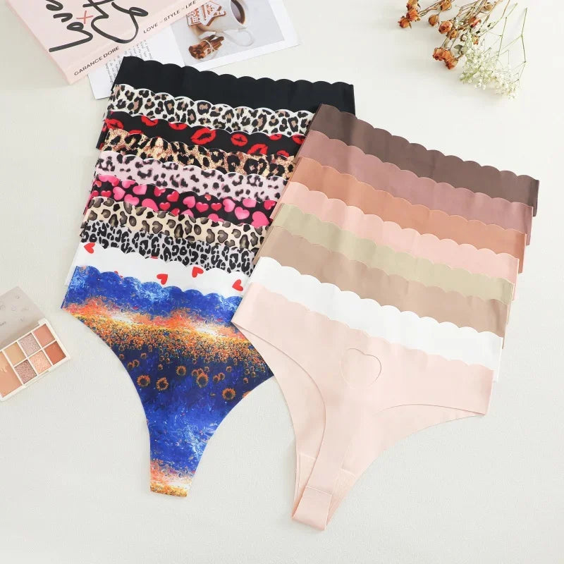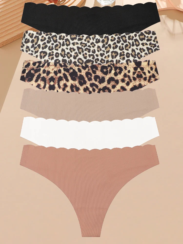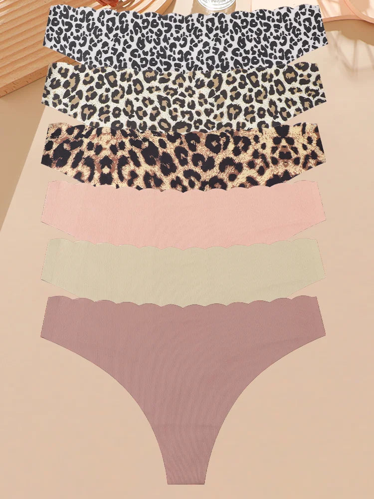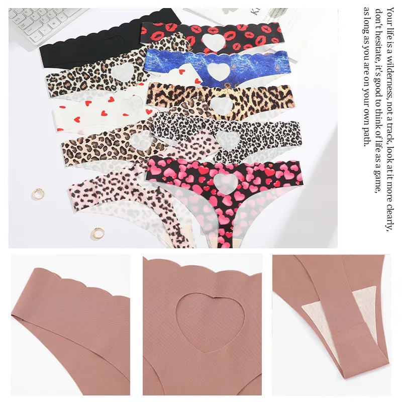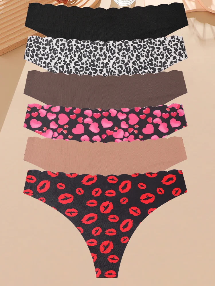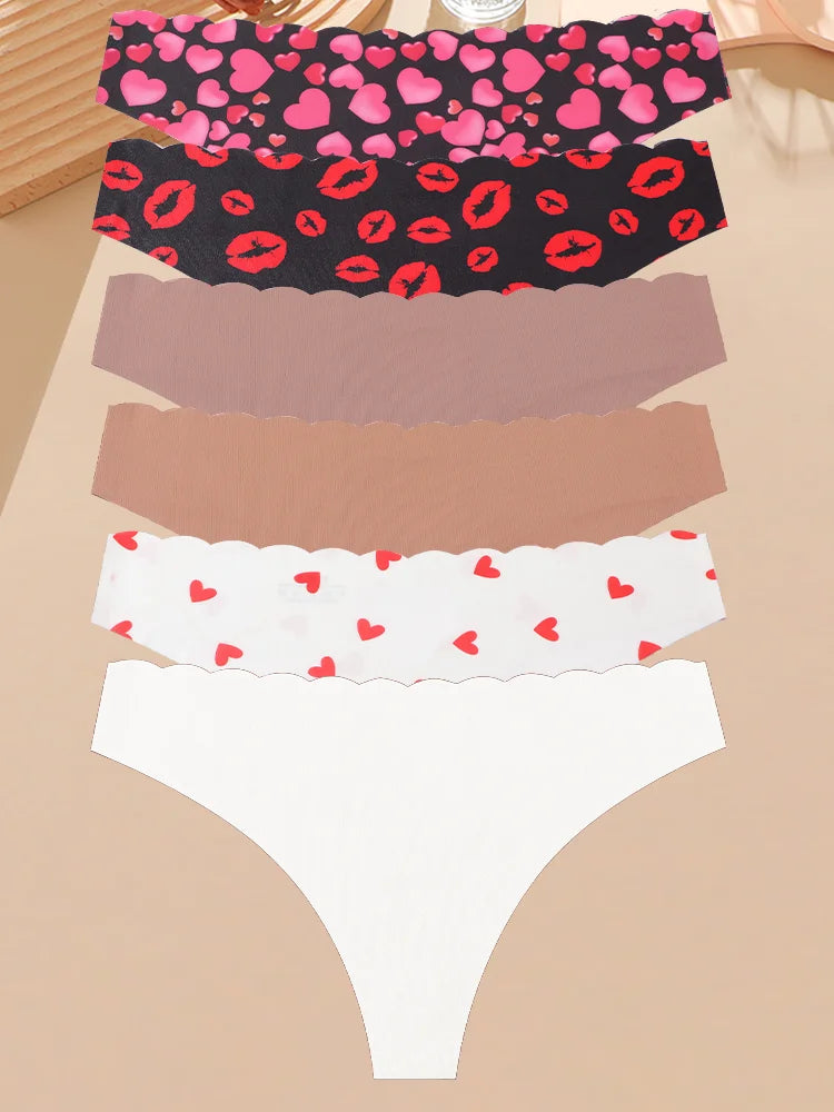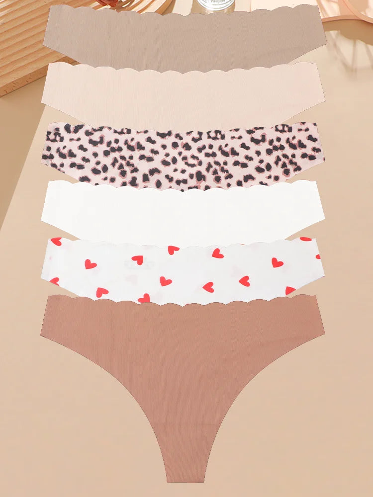 6PCS Seamless Hollow Heart Thong Set – Soft Breathable Hip-Covering Panties for Women