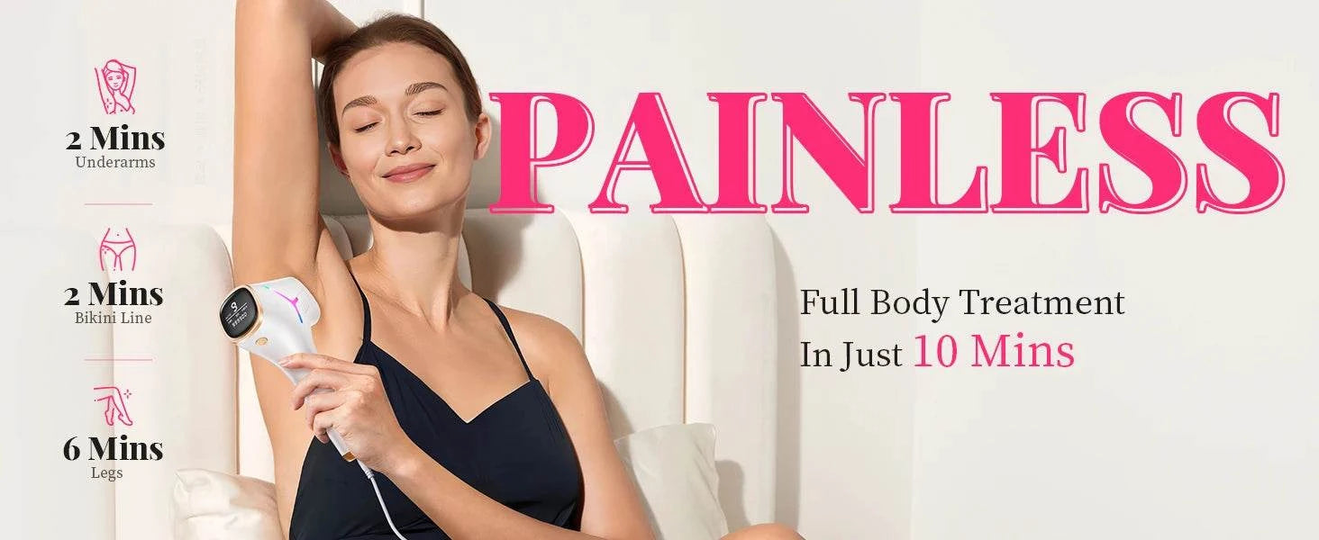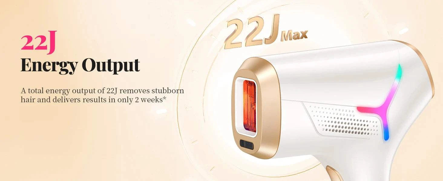 [Nearly Painless Hair Removal at home] Double IGBT pulse technology and realize 0.12S fast flash can deliver two consecutive pulses, reduces the pain caused by a single energy to achieve painless hair remover, max 22J can deep reach and accumulate target hair follicle melanin to fast and effeive removing.