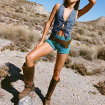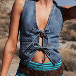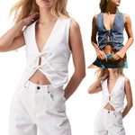 Camisole Tanks For Women 2024 Women Sexy Denim Vest Deep V Neck Tie Up Front Sleeveless Jean Tank Top Low Cut Tanques De Mujer