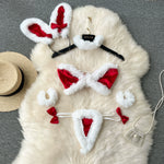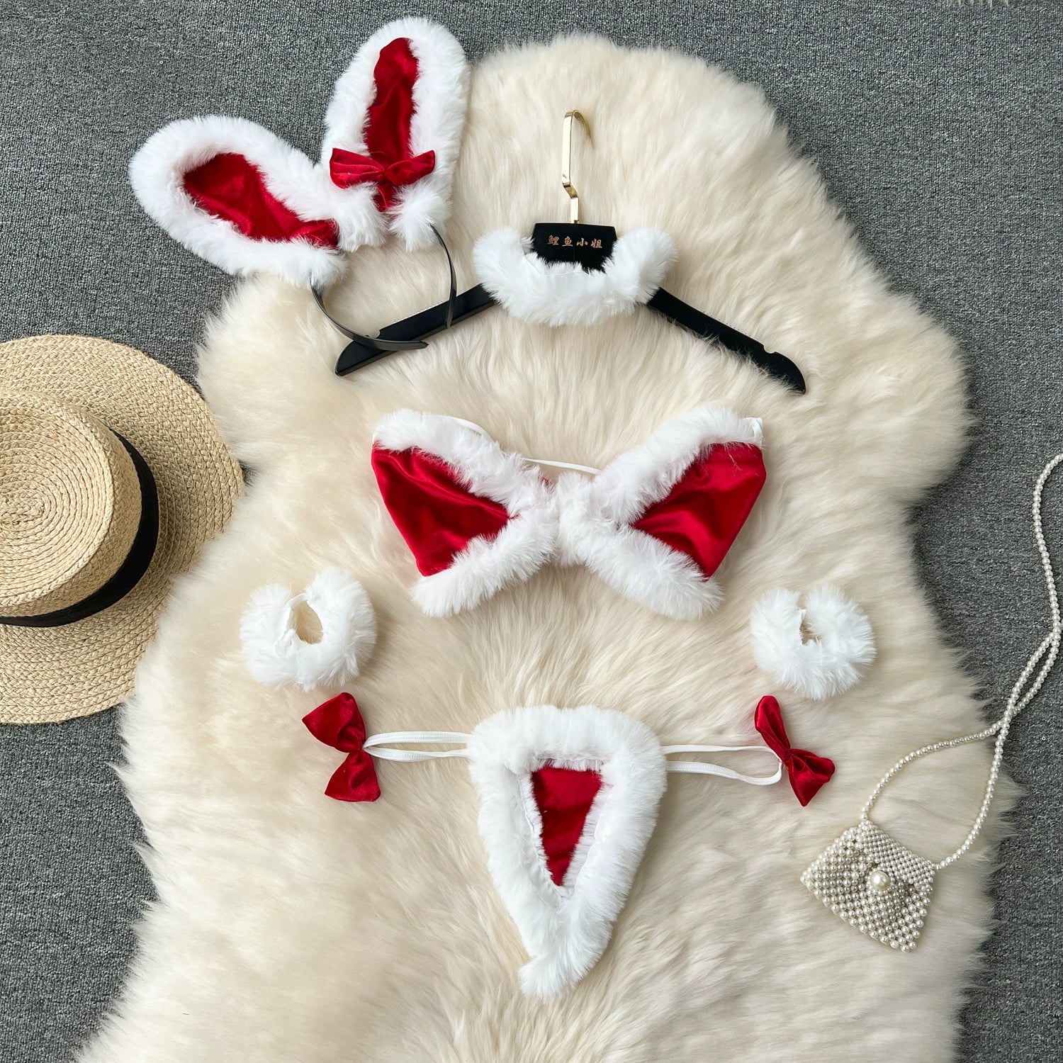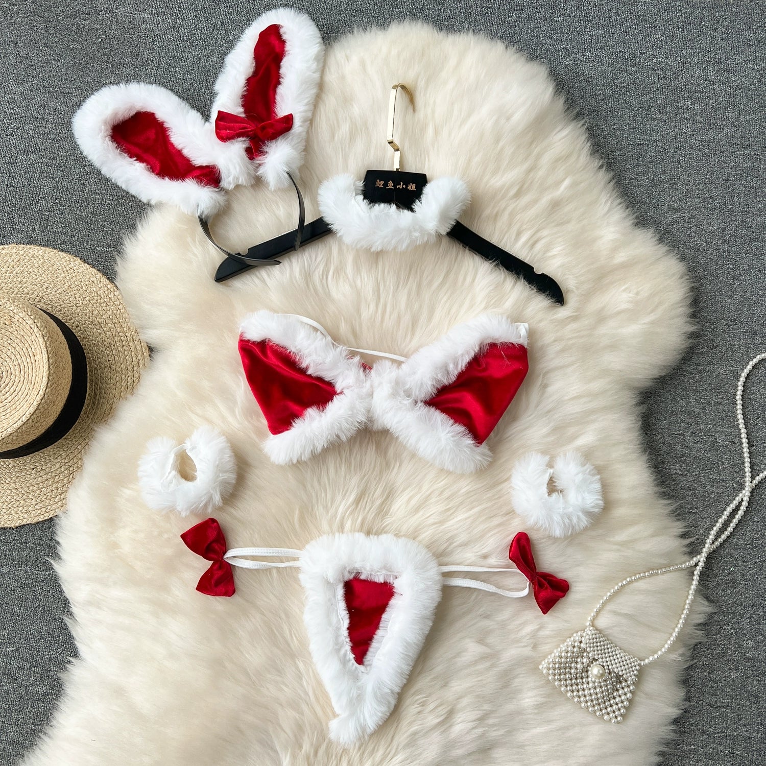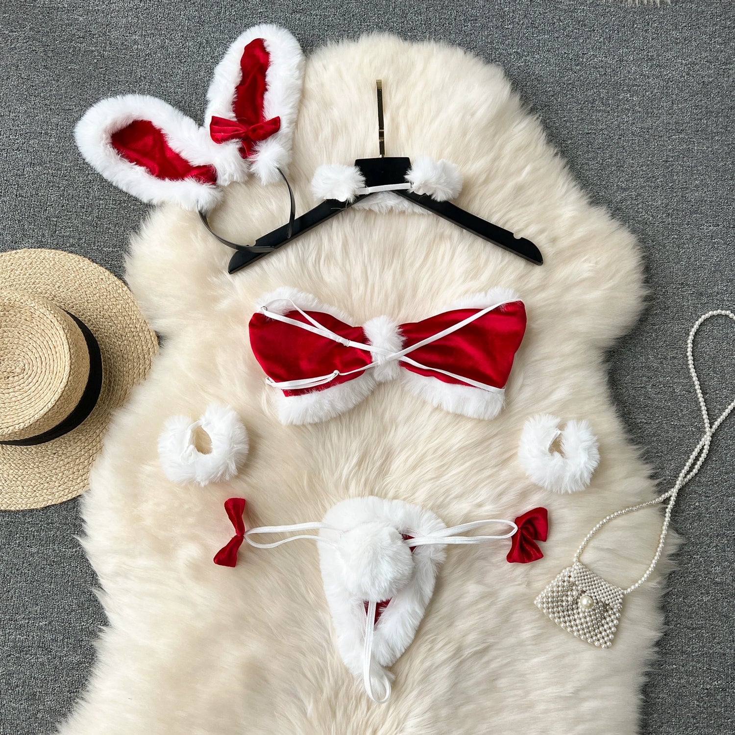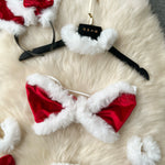 CHILLGIO Women Sexy Christmas Velour Bra Brief Suits Fashion Intimate Lingerie 5 Piece Erotic Bras Thongs Outfits Underwear Sets