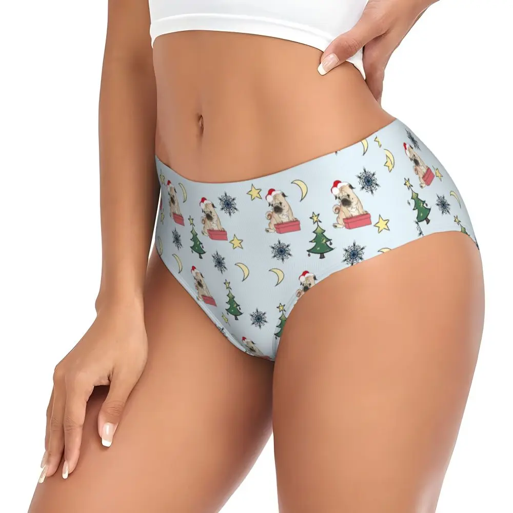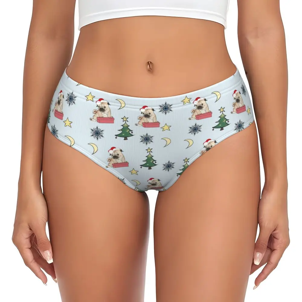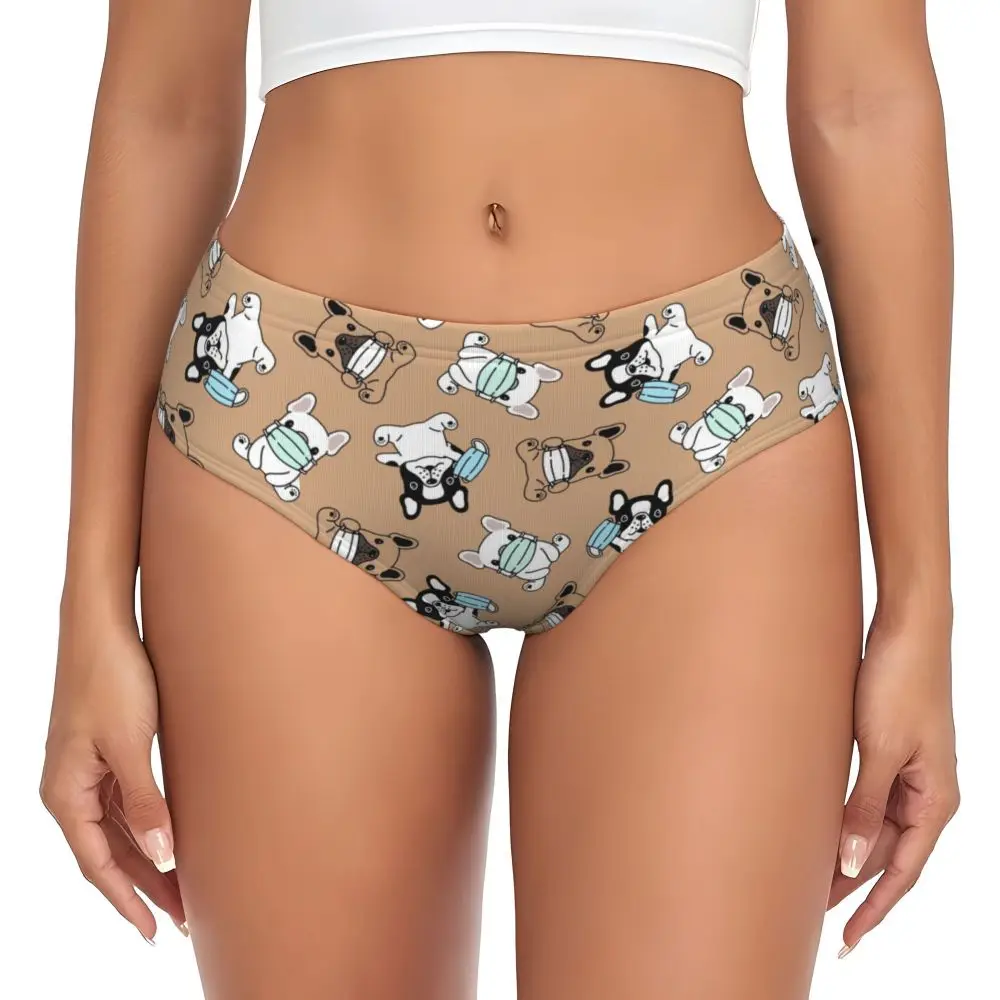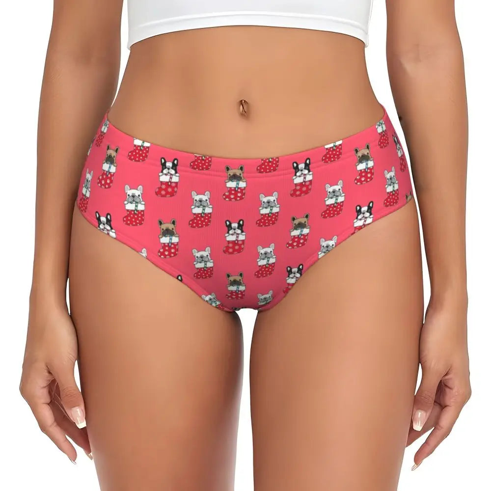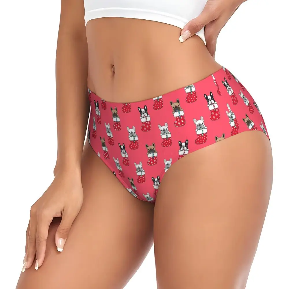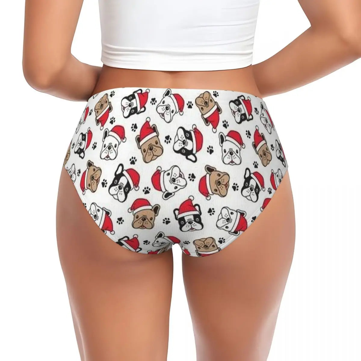 Custom Womens French Bulldog Christmas Santa Claus Brief Panties Female Stretch Underwear Underpants
