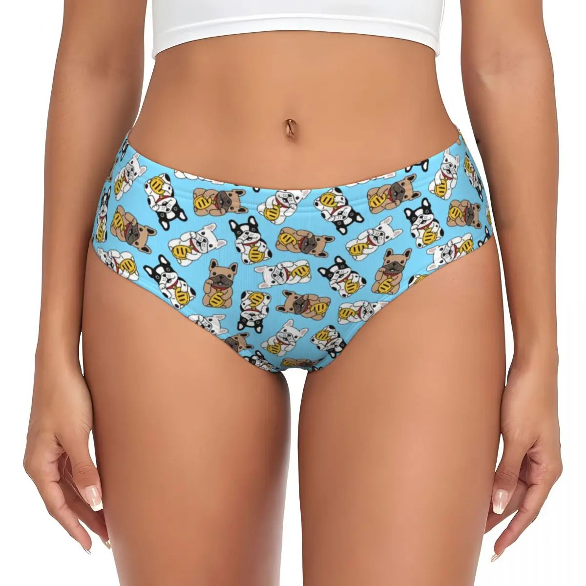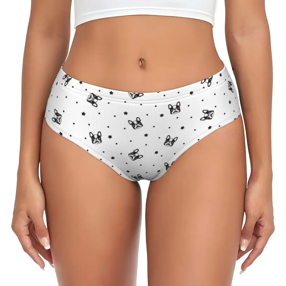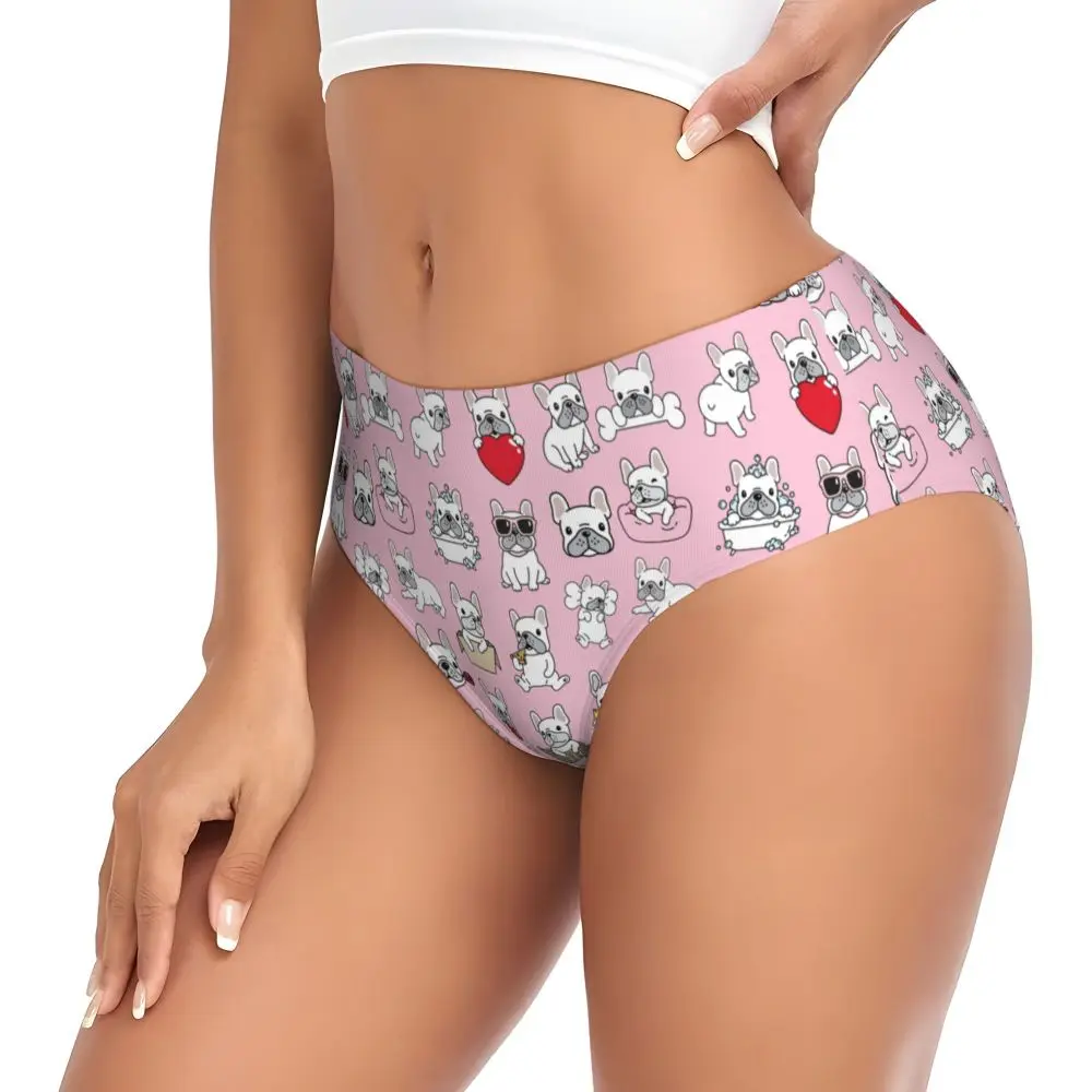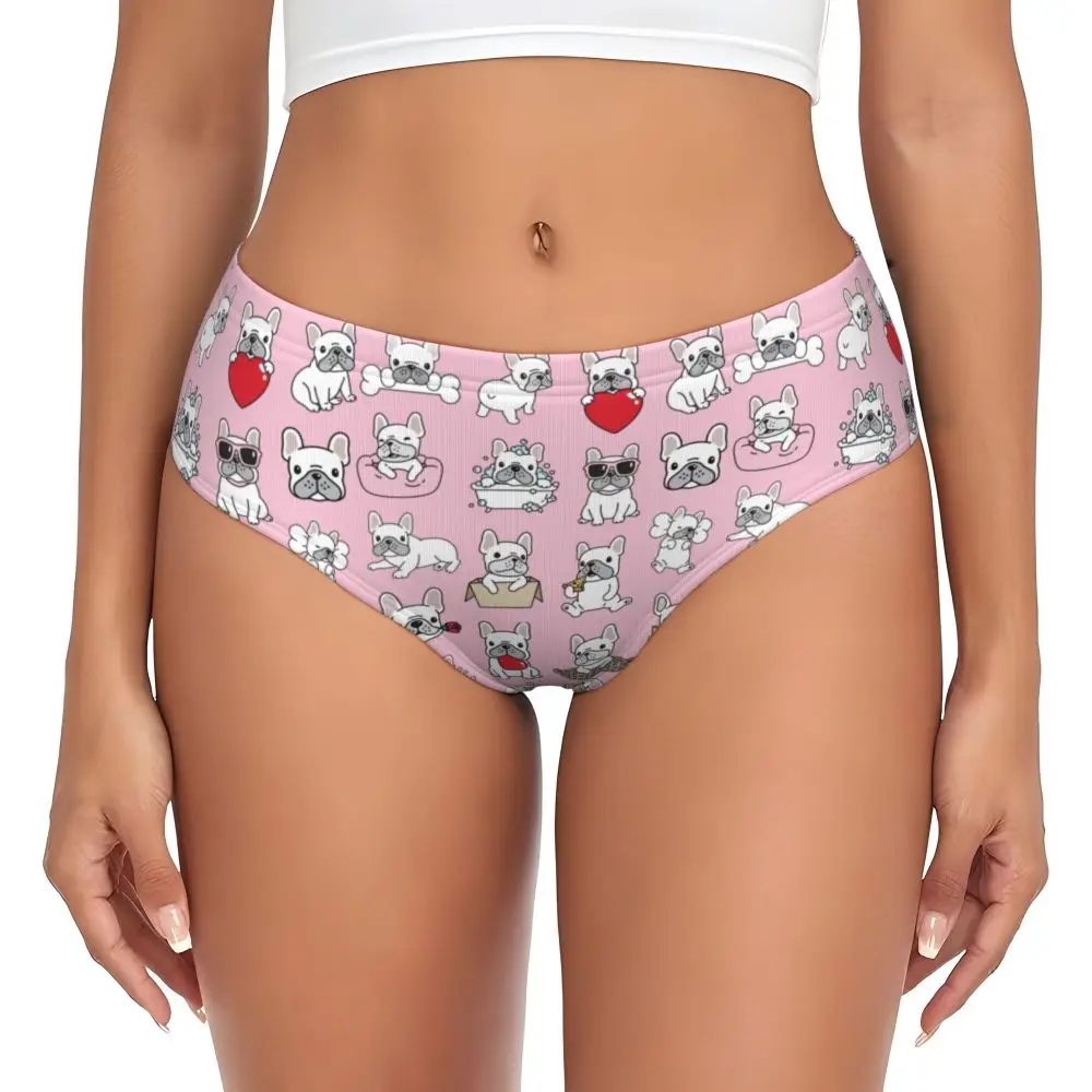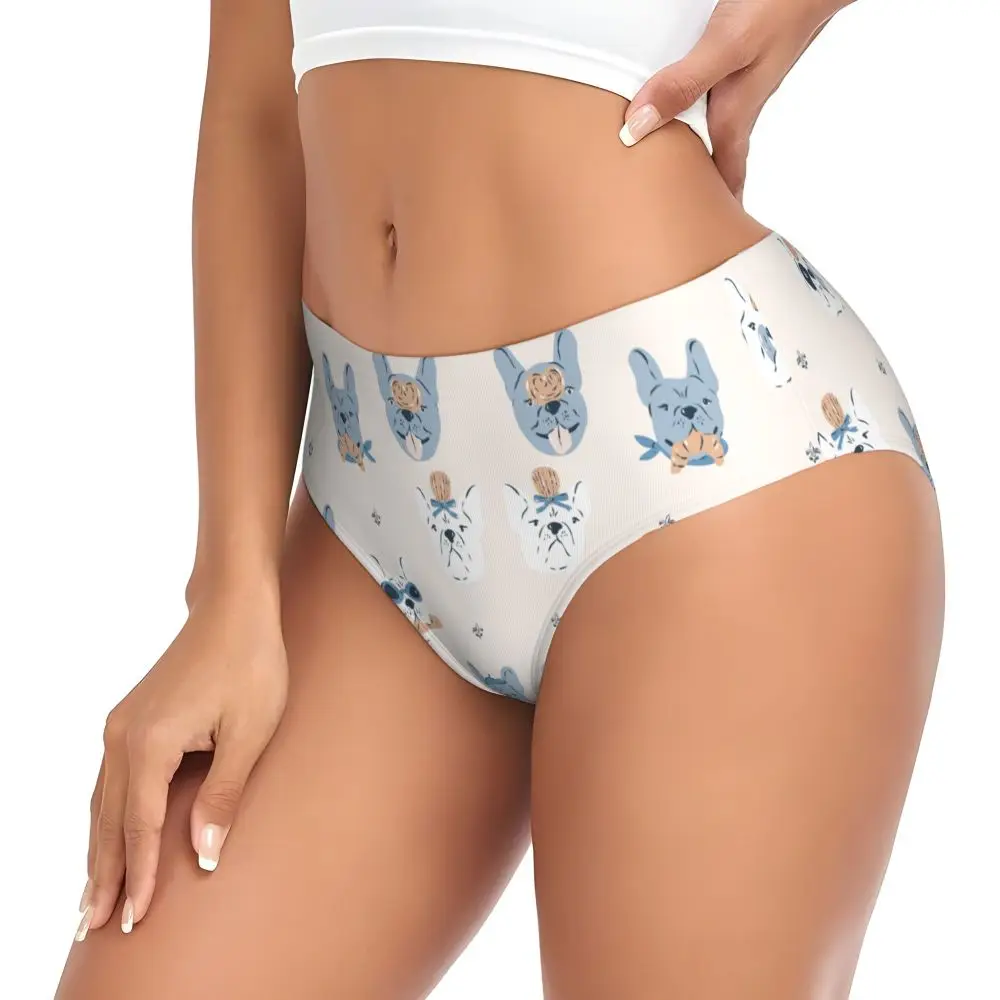Custom Womens French Bulldog Christmas Santa Claus Brief Panties Female Stretch Underwear Underpants