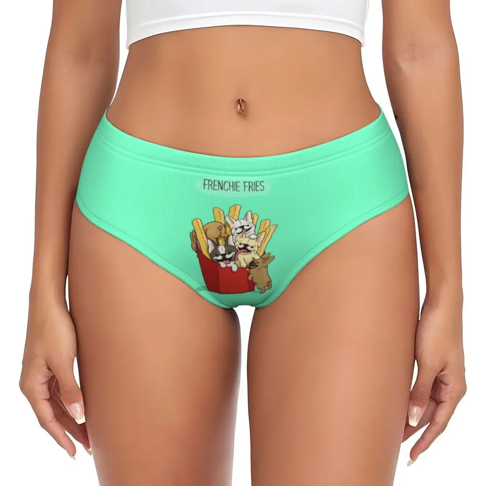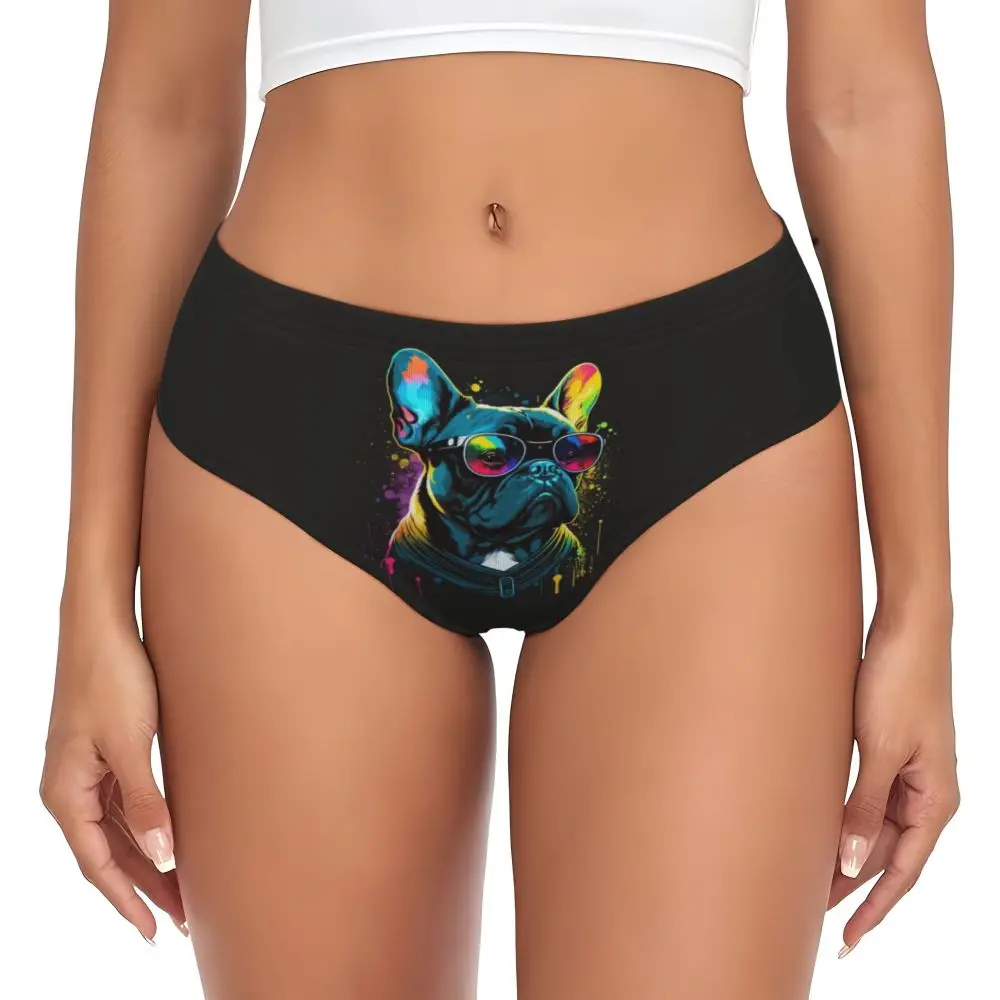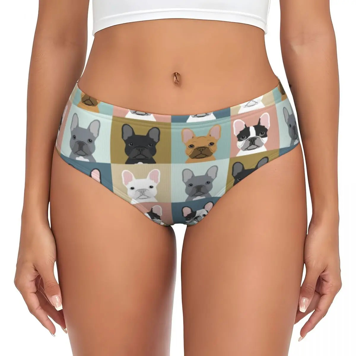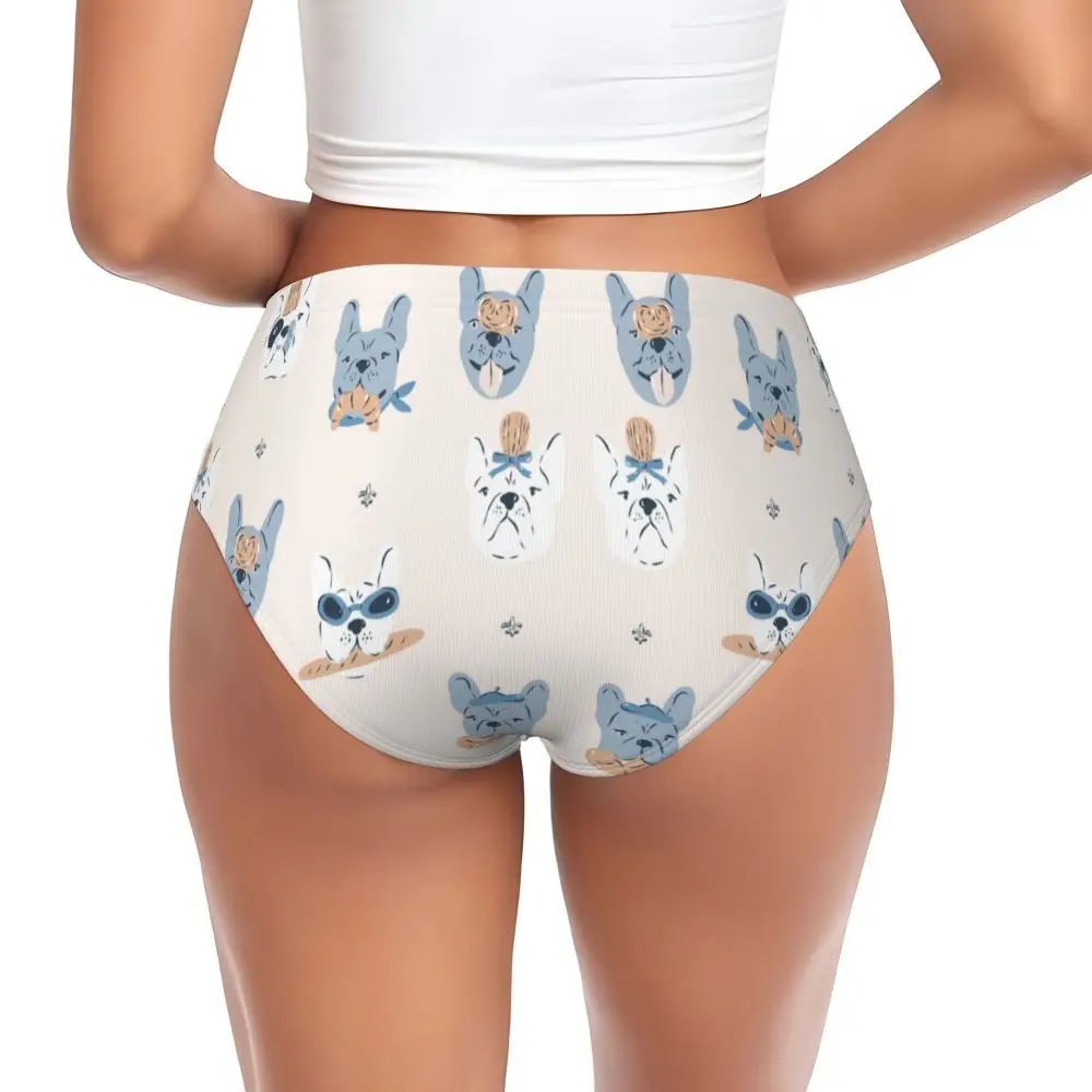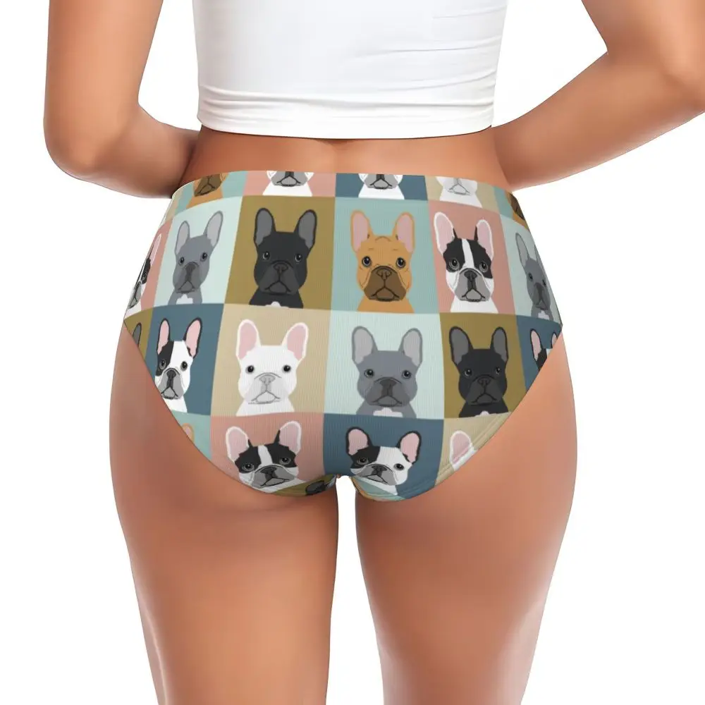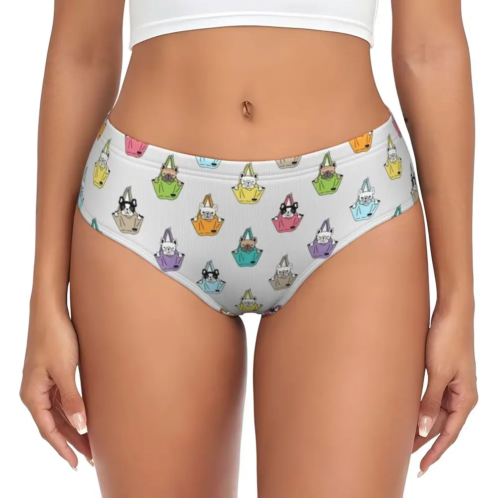 Custom Womens French Bulldog Christmas Santa Claus Brief Panties Female Stretch Underwear Underpants