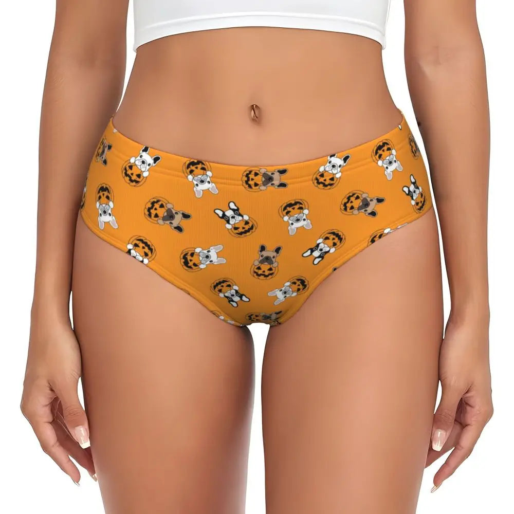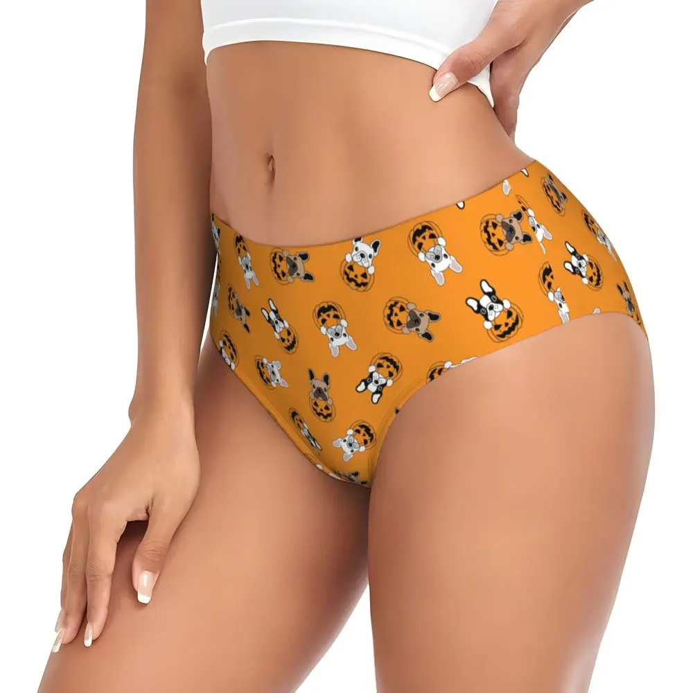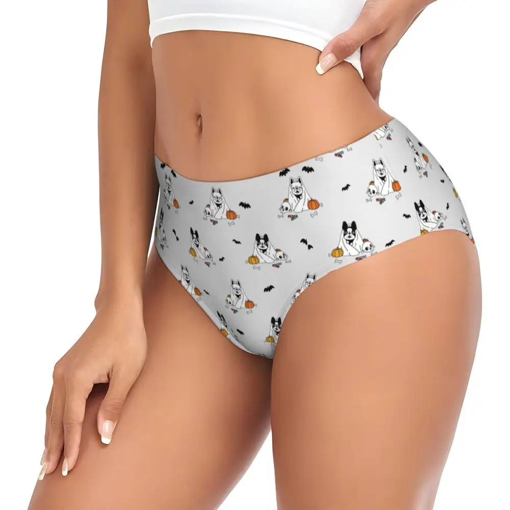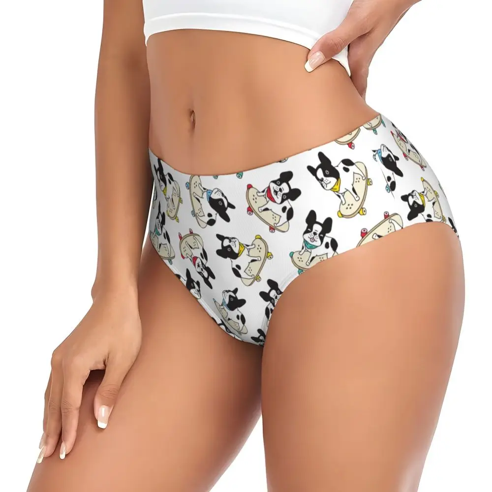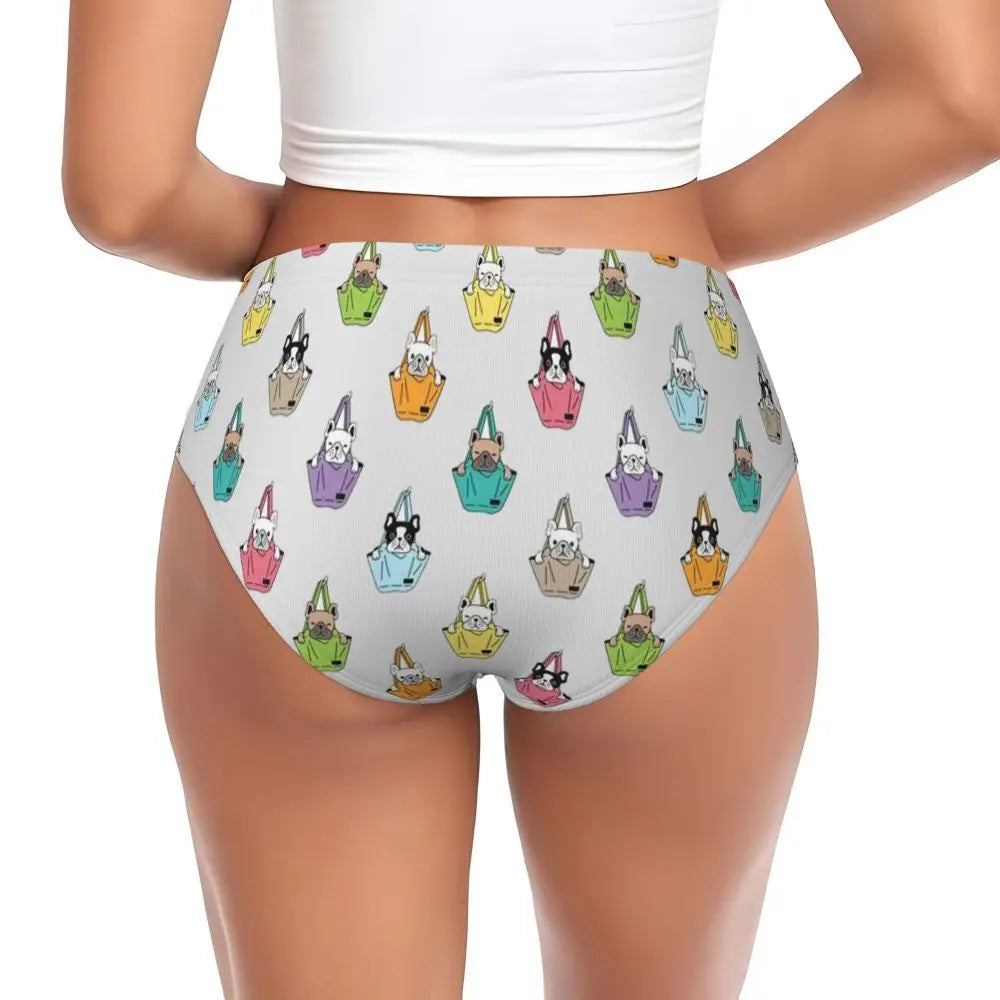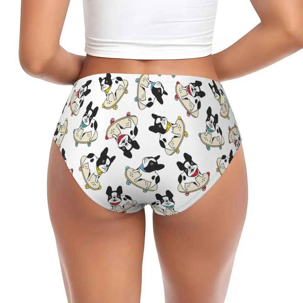 Custom Womens French Bulldog Christmas Santa Claus Brief Panties Female Stretch Underwear Underpants