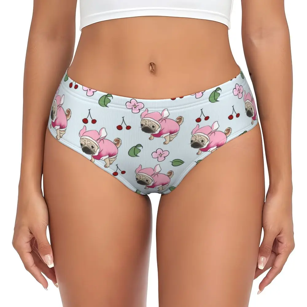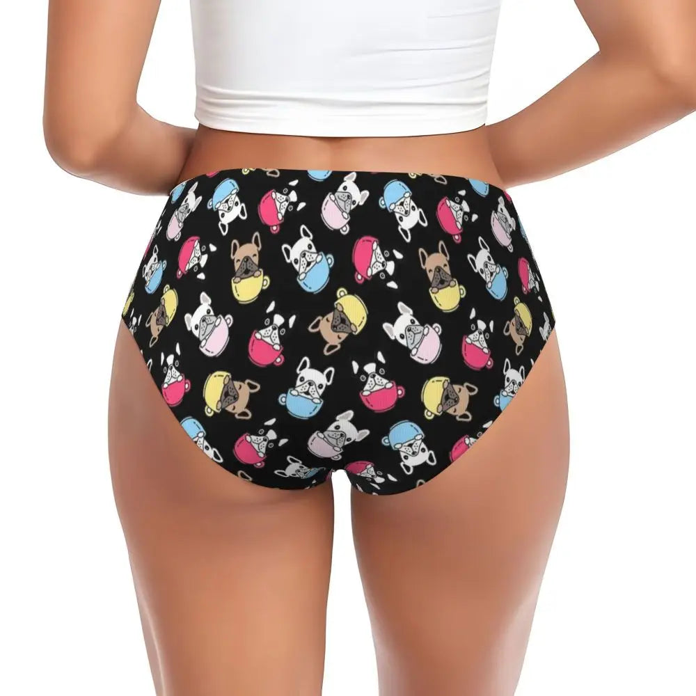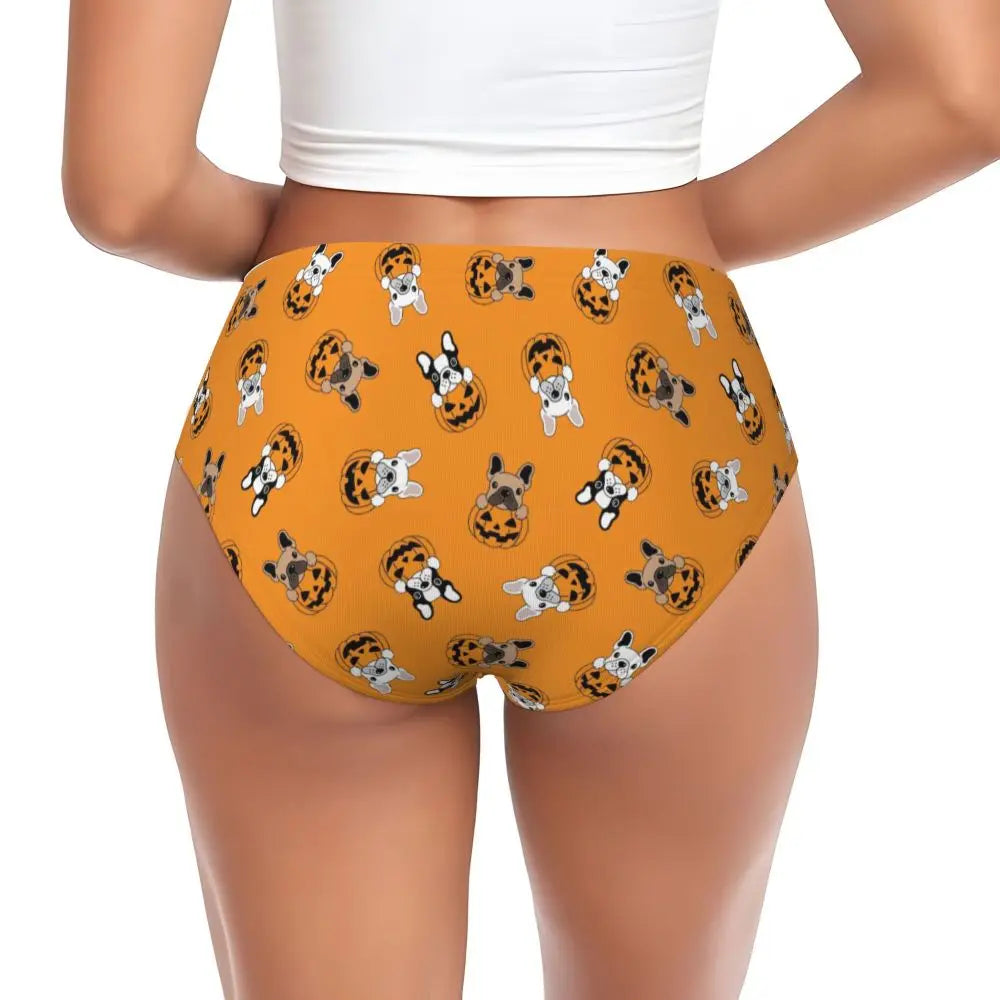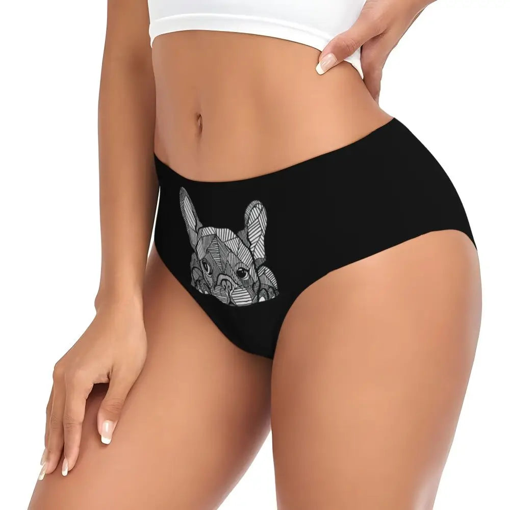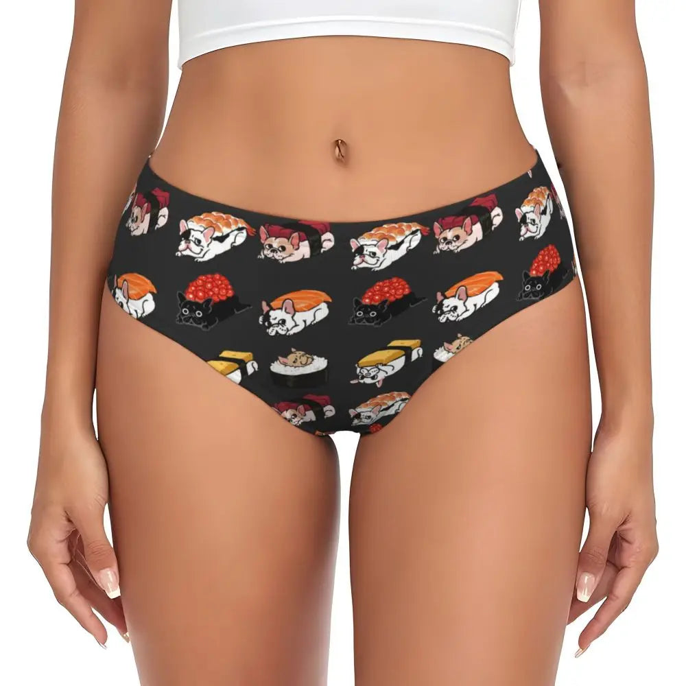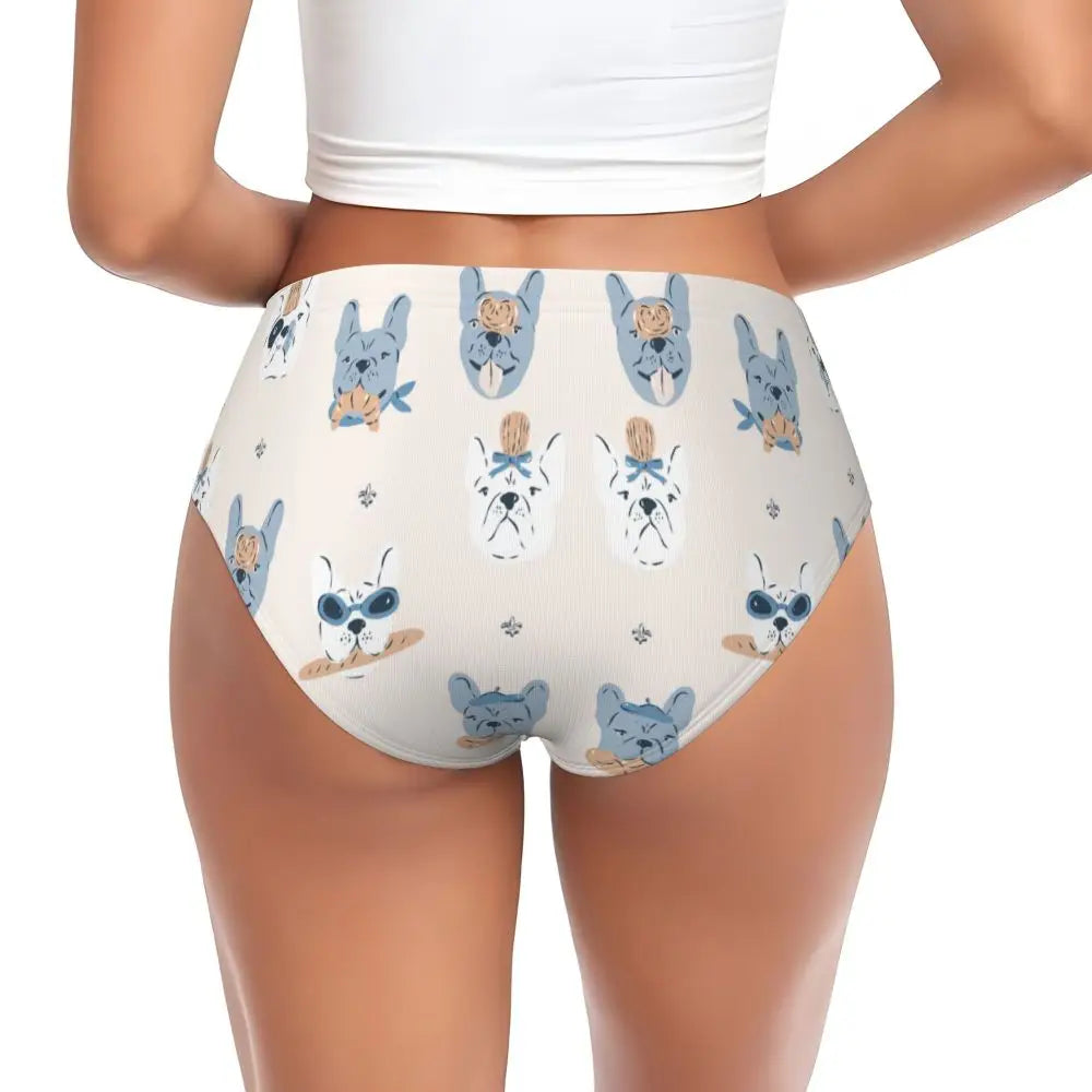 Custom Womens French Bulldog Christmas Santa Claus Brief Panties Female Stretch Underwear Underpants