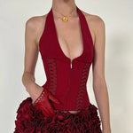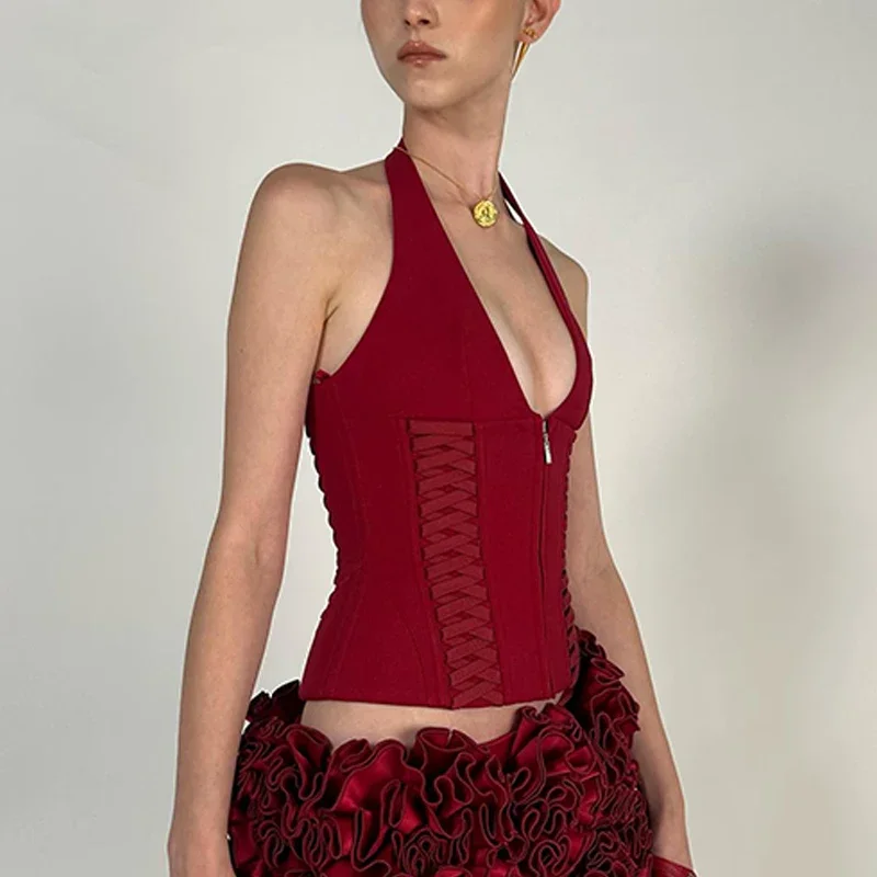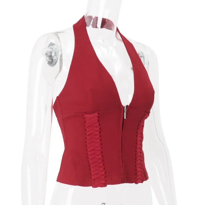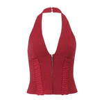 Fashion Cross Tie Zipper Slim Women's Vest Sexy Off Shoulder Backless Sleeveless Halter Top Casual Summer Street Camis