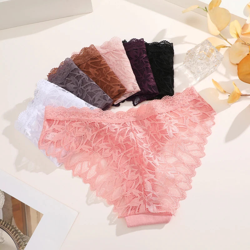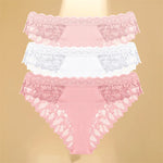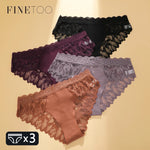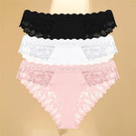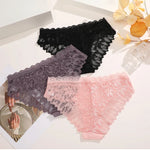FINETOO 3Pcs Lace Hollow Out Underwear for Women Sexy Low-Waist Floral Briefs Female Invisible Breathable Lingerie Soft Intimate