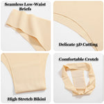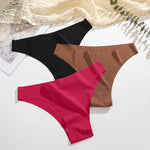 FINETOO 3Pcs Ultra-thin Seamless Silk Underwear Women's Panties Sexy Low-Waist Stretch Bikini Solid Color Briefs Lingerie XS-XXL