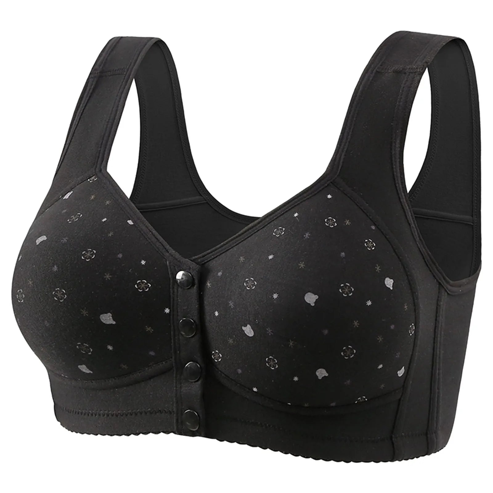 Front Button Retro Printed Bra Without Steel Ring Wide Shoulder Strap Middle-Aged Elderly Underwear Plus Size Women'S Vest Bras