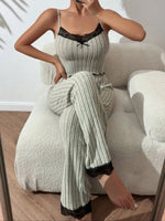 Home service gray love suspender vest pajamas Female can wear long pants two -piece suit