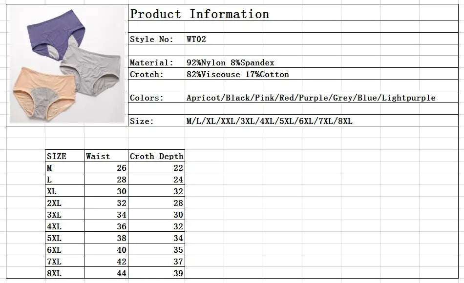 Leak Proof Menstrual Panties Underwear Period Physiological Pants Women Waterproof Briefs Plus Size L-8XL Female Lingerie