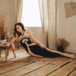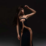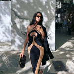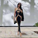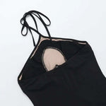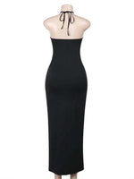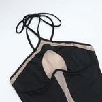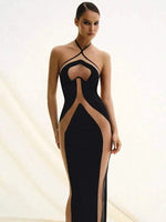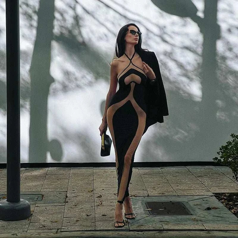 Mesh Patchwork Halter Neck Dresses for Women Sexy Lace-up Backless See-through Evening Dress Sleeveless Backless Long Party Robe
