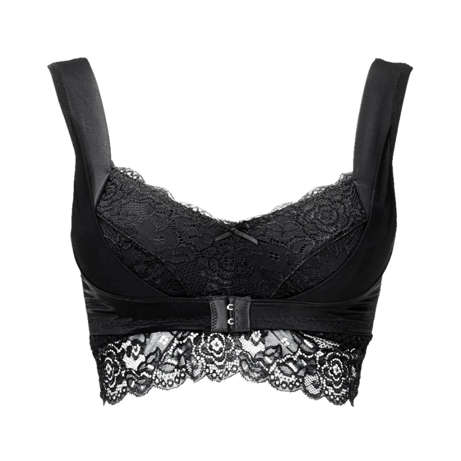 Push Up Vest Bras for Women Posture Corrector Gathered Bra without Steel Ring Front Closure Floral Embroidery Lace Bra Underwear