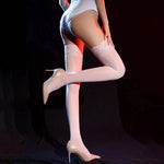 Sexy Horse Oil Shinny Silk Stockings Silicone Non-Slip Lace Thigh High Socks Summer Ultra Thin Hosiery Lingerie
