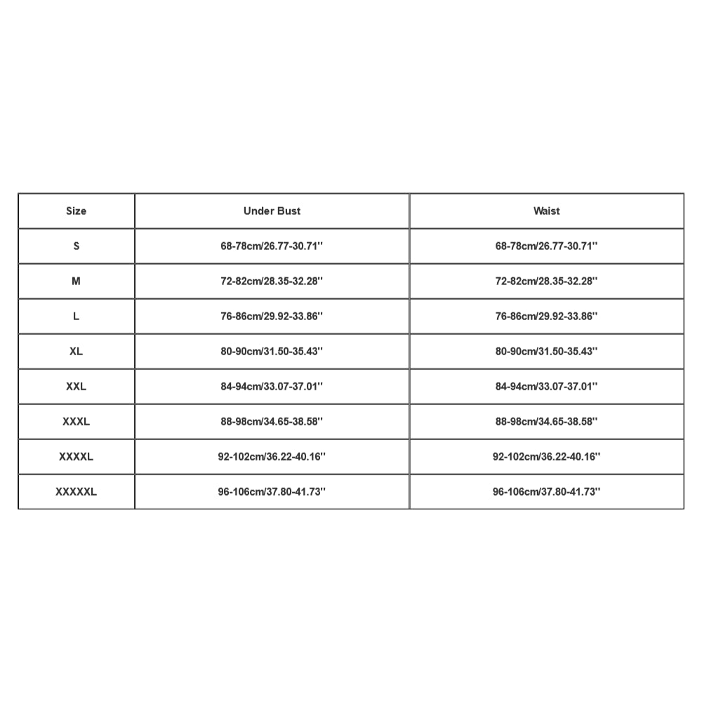 | Size:XXXXXL | Under Bust:96-106cm/37.80-41.73'' | Waist:96-106cm/37.80-41.73'' |