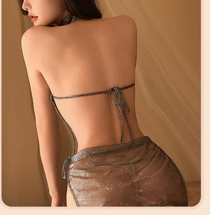 Sexy lingerie nightclub perspective flirting uniform hot no take off mesh deep V-strap set sexy costume woman daring lingerie