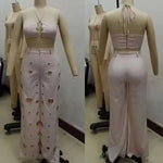 Sexy Night Party 2 Piece Sets Women Outfit Clubwear Festival Clothing Halter Crop Top and Pants Conjuntos Femininos Elegantes