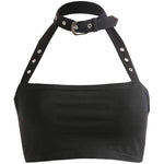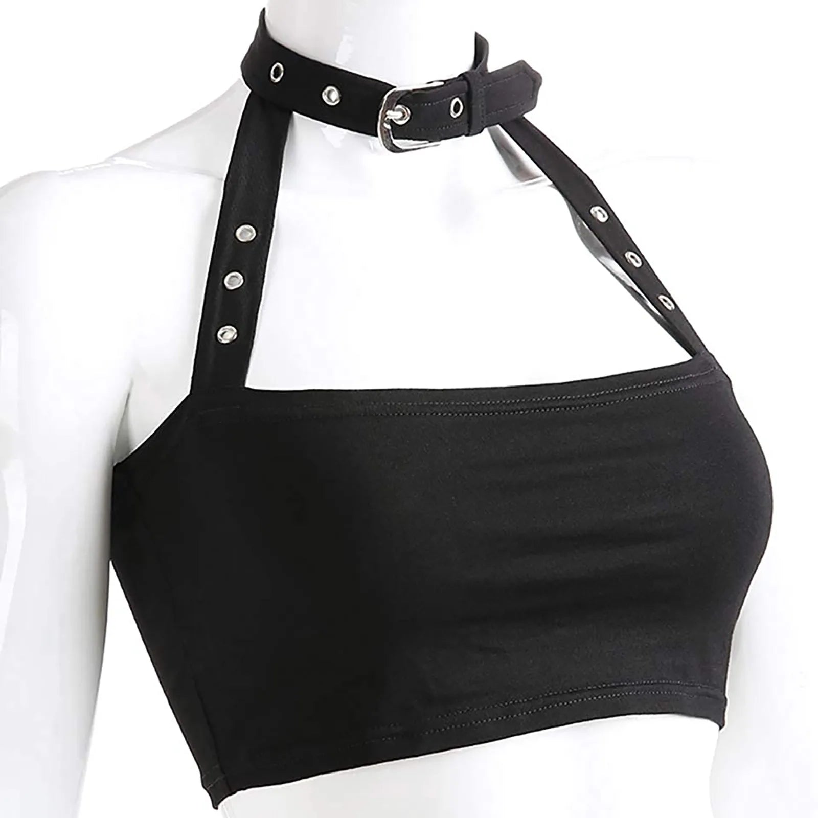 Sexy Punk Style Choker Halter Top Women Sexy Fashion Slim Cami Backless Choker Buckle Cropped Top Summer Crop Bandeau Tank Tops