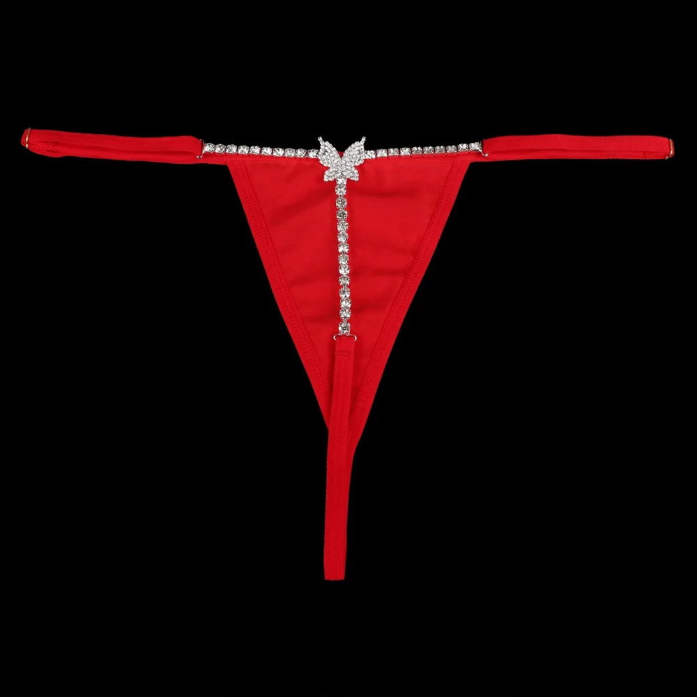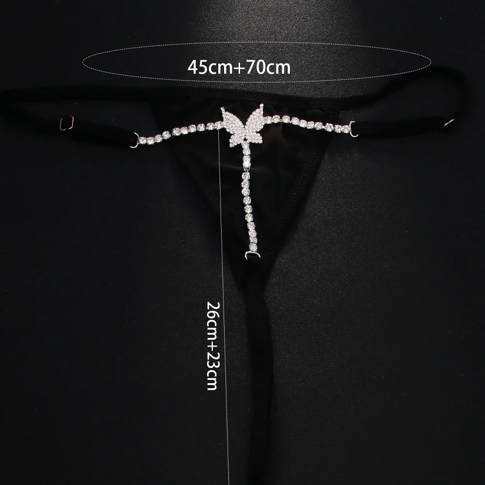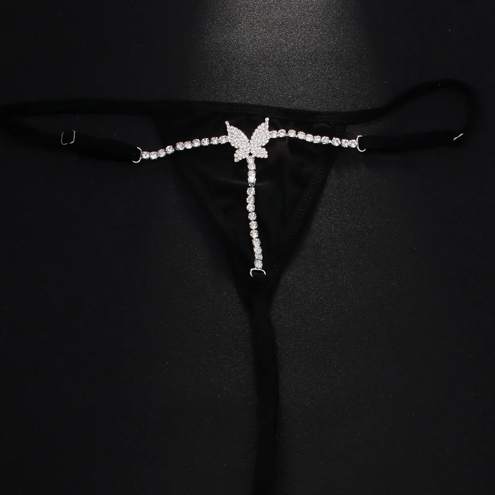 Stonefans Rhinestone Chain Butterfly Panties Body Jewelry for Women Sexy Low Back Thong Bikini Black Choth Lingerie Underwear
