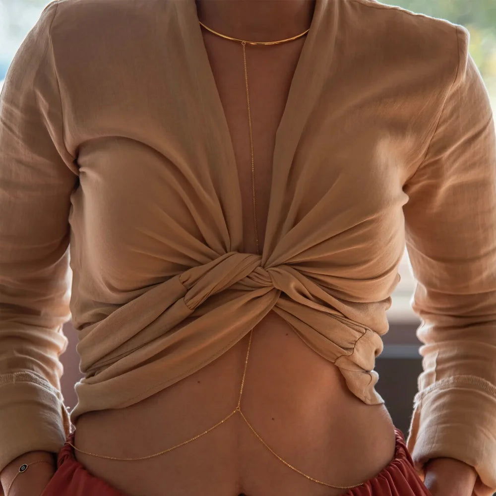 Stonefans Sexy Choker Body Chain Harness Collar Jewelry for Women Simple Metal Chain Body Necklace Bikini Decor Accessories