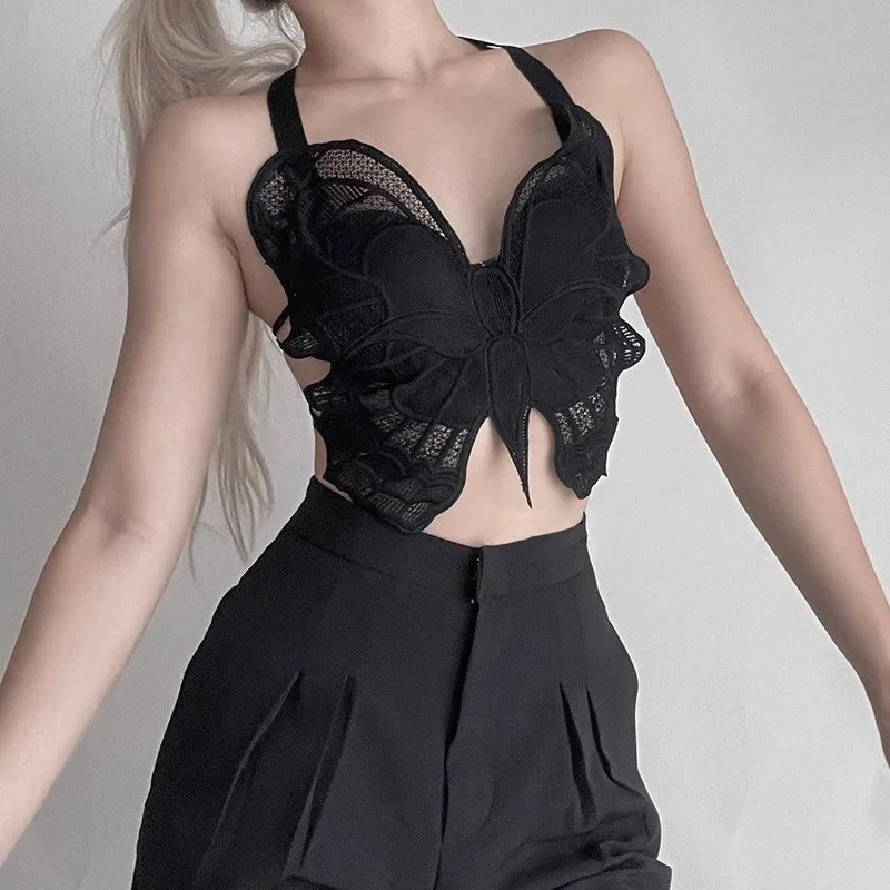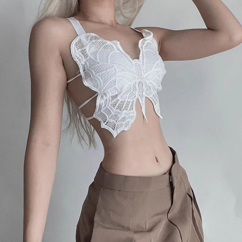 Summer Lace Butterfly Slim Sexy Exposed Navel Padded Camisole TankTop