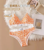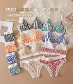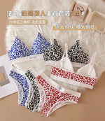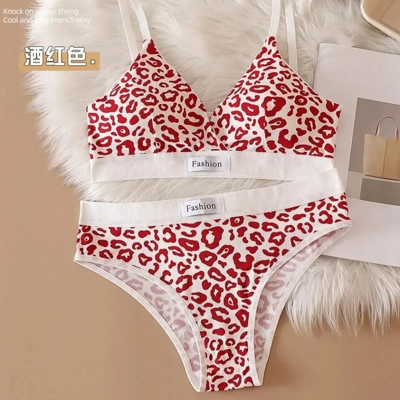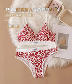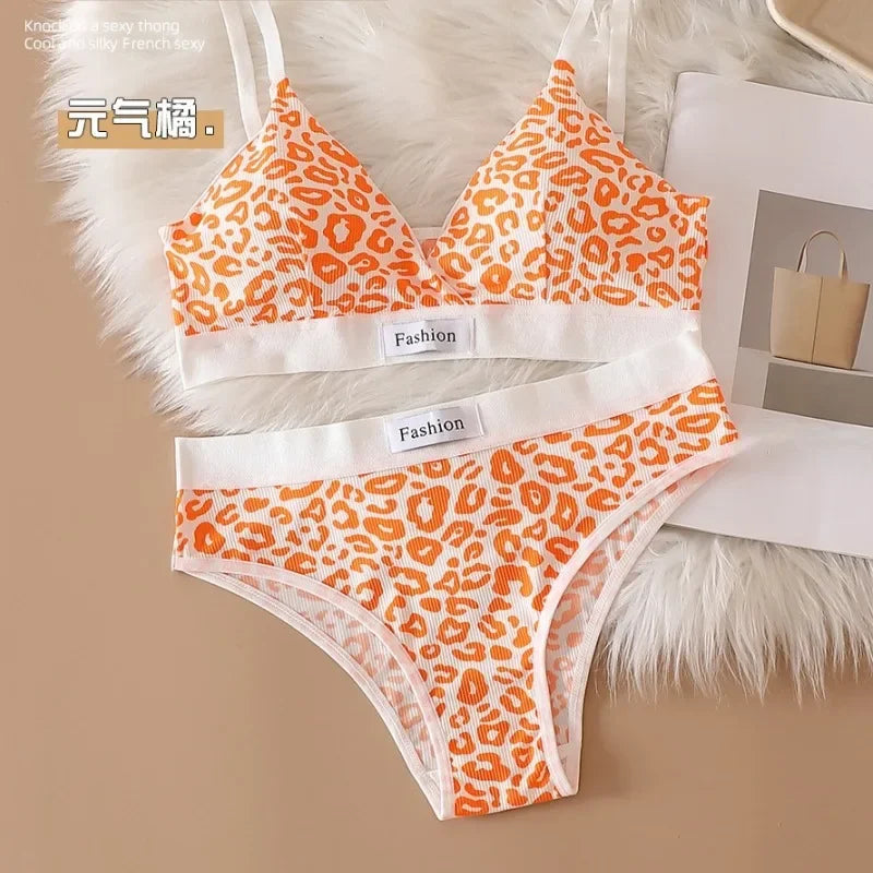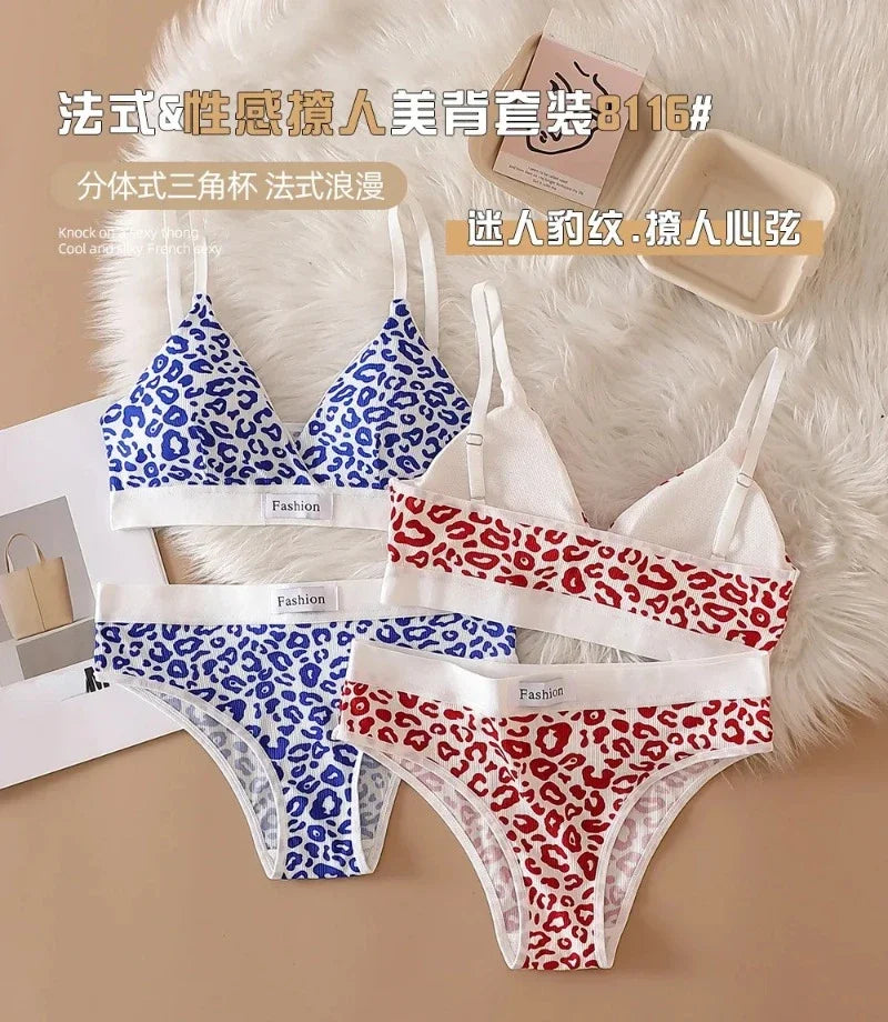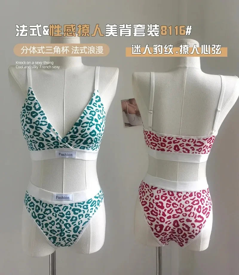 Leopard-Print Traceless Steel-Rim Bra & Underwear Set – Adjustable Strap-Back Support