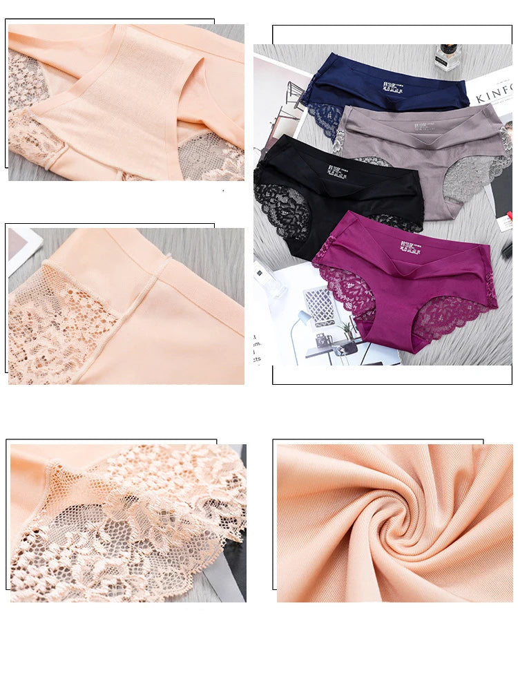 TEXIWAS 4pcs/lot Lace Panties Women Seamless Ladies Underwear Lace Briefs Sexy Panties for Women Comfort Lingerie Plus Size