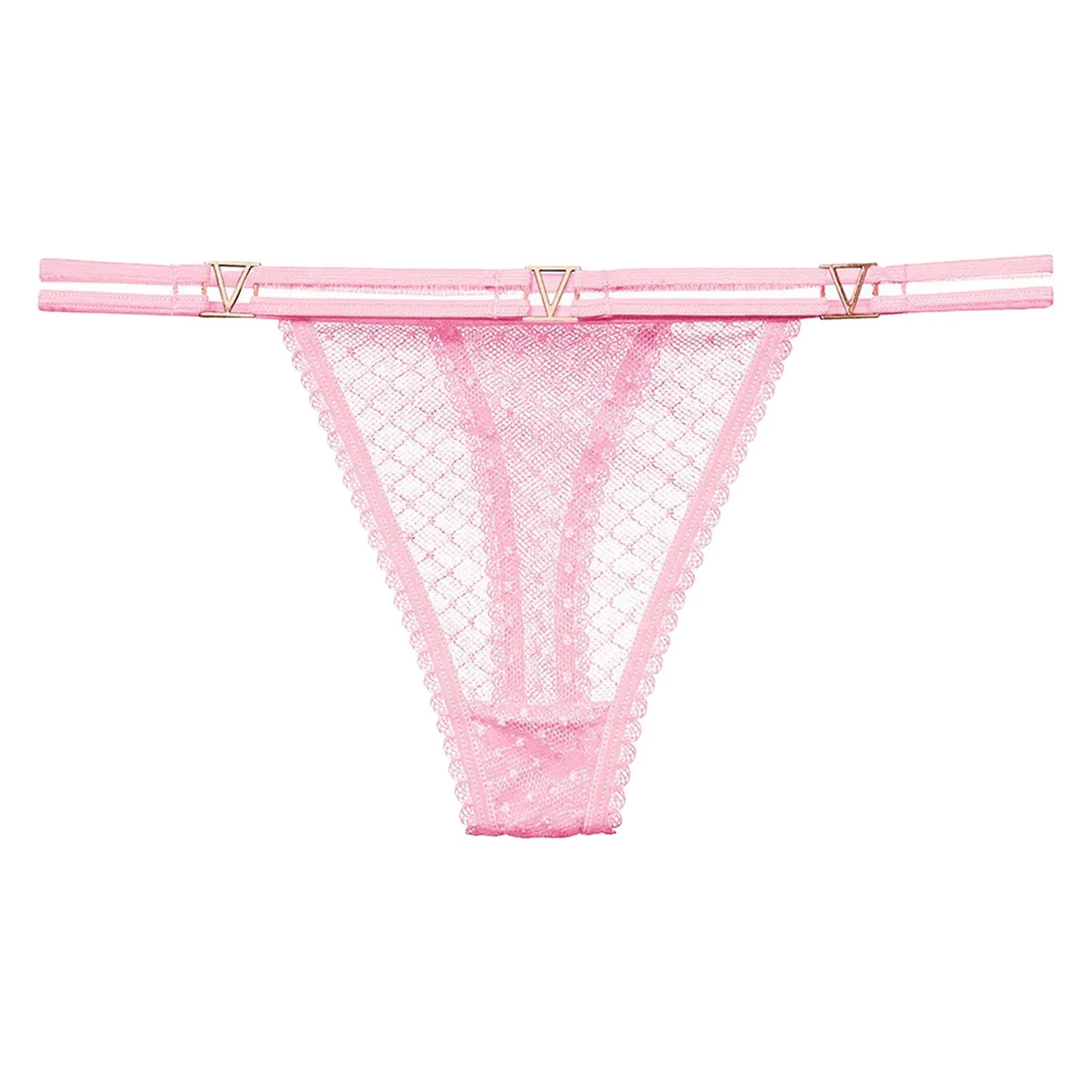 Seamless Hipster Mesh Thong – Low Waist Multi-Color G-String with Lace & Metal Buckles for Women