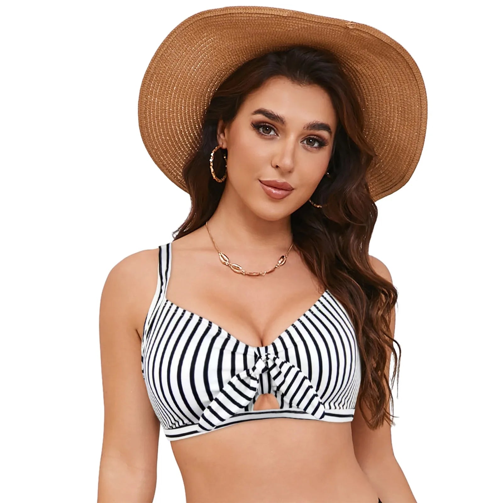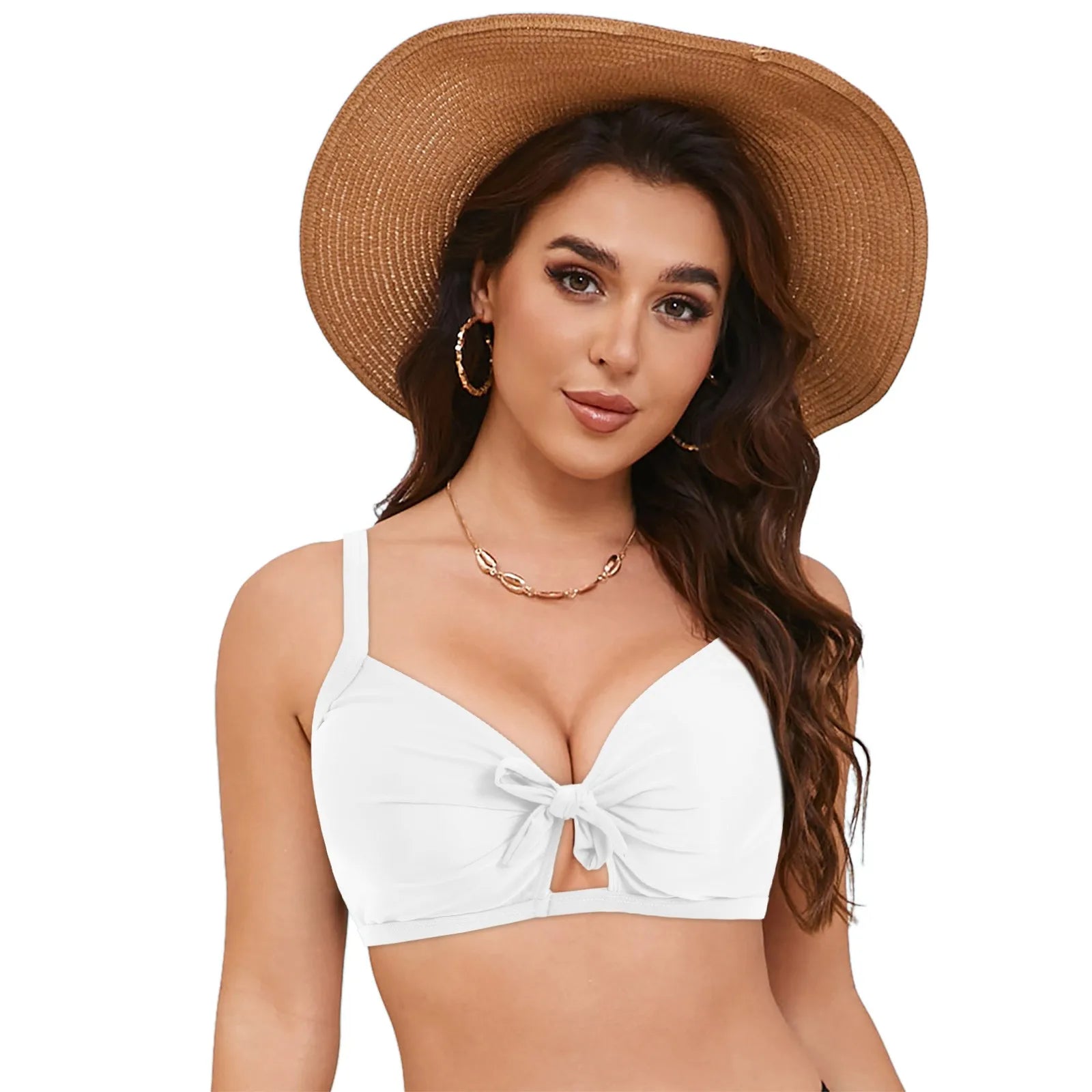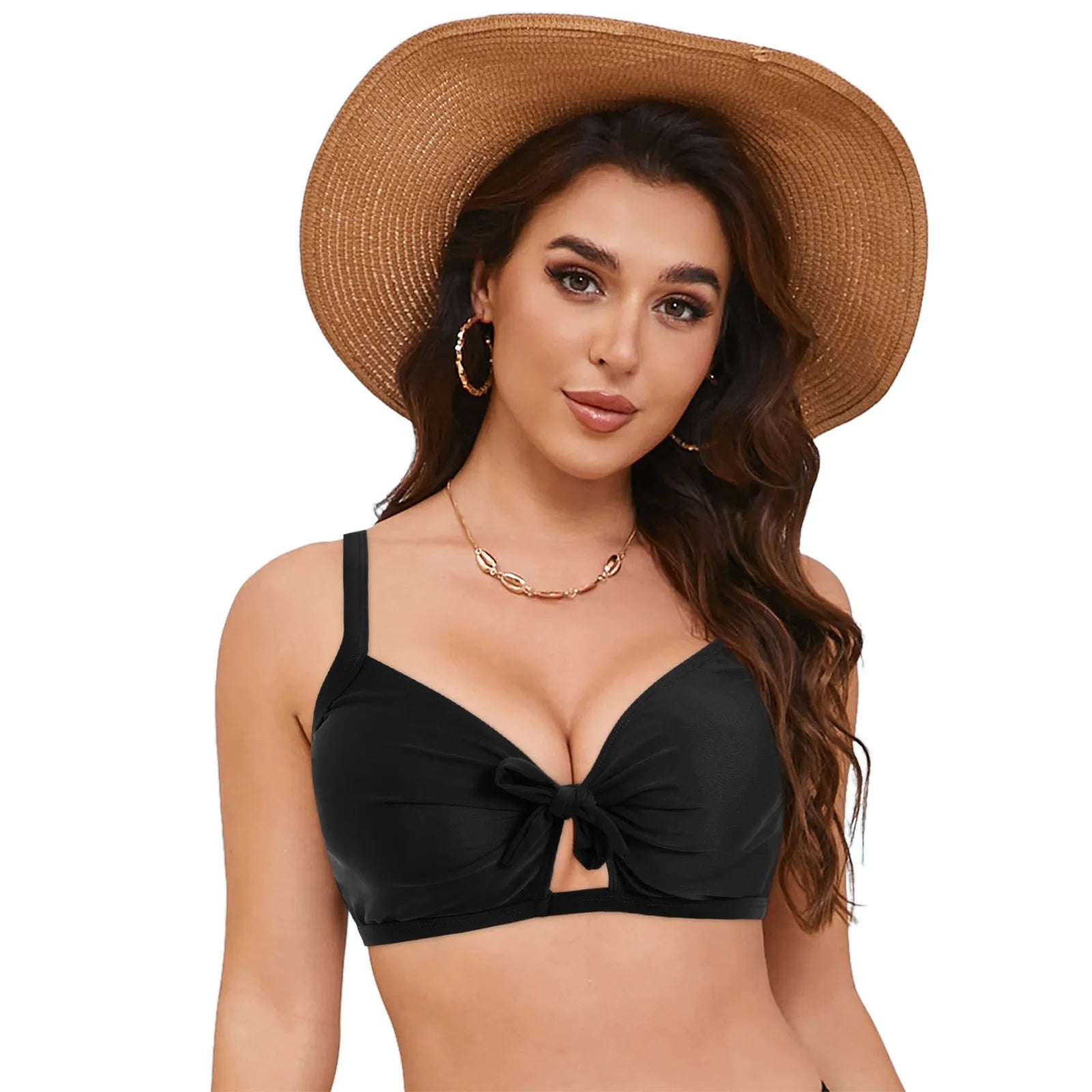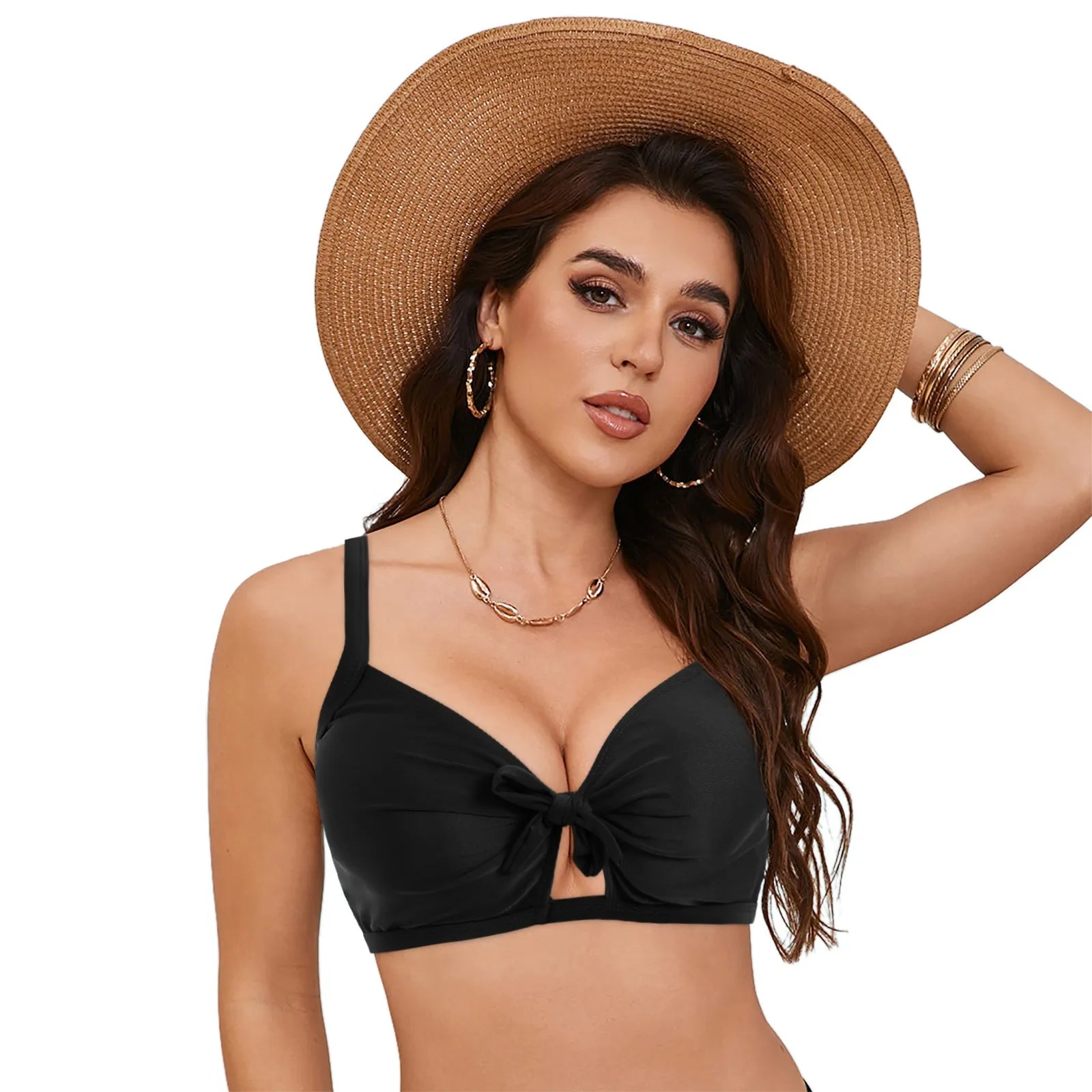 Women Swimwear Tops Underwire Full Coverage Bikini Top Push Up Swim Crop Top Bathing Suit Tops High Neck Tankini Top Backless Keyhole Design For Stylish Swimwear