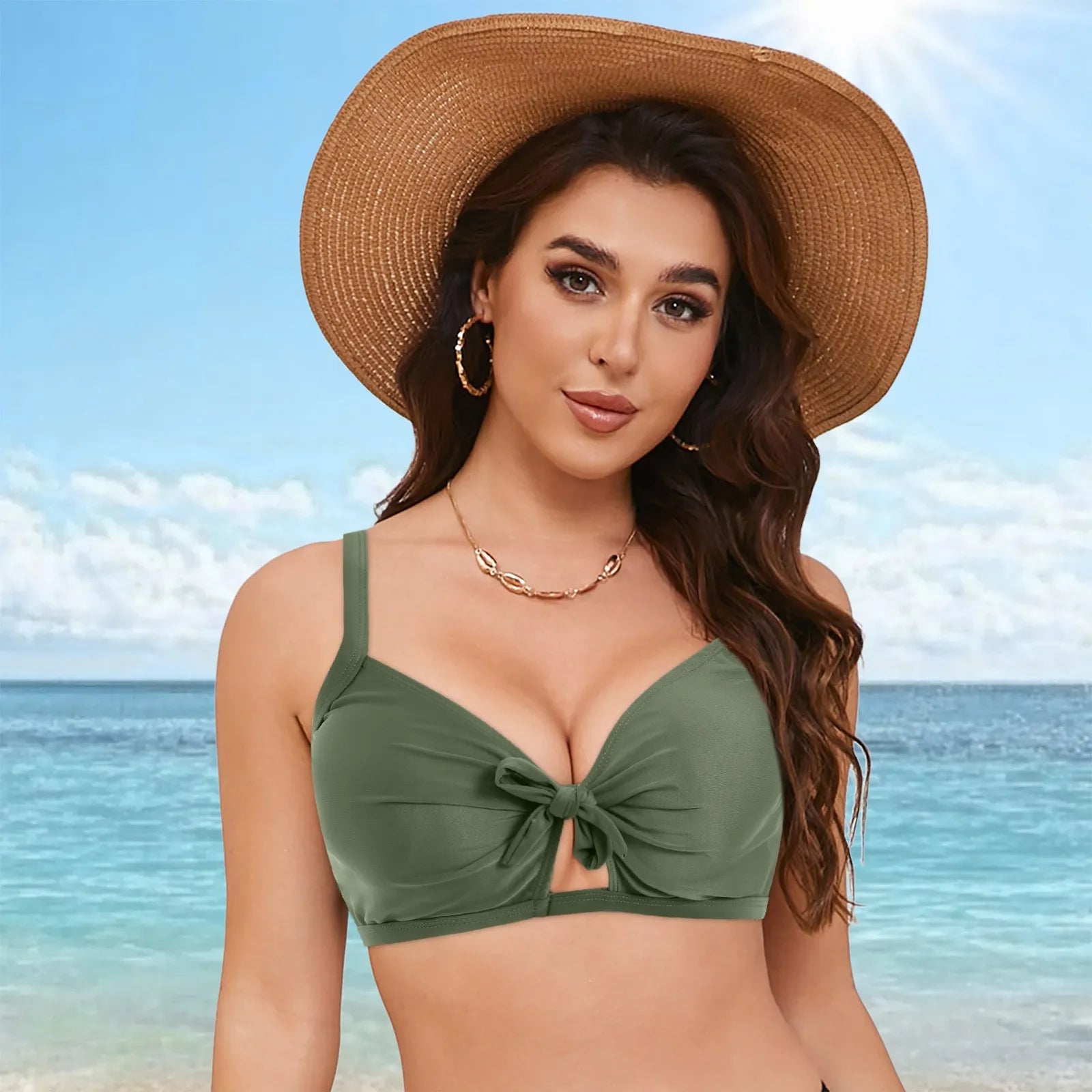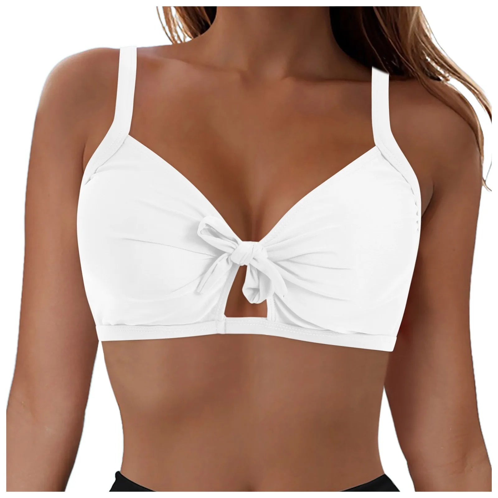 Women Swimwear Wrapped Knot Solid Color Push Up Gathering Sexy Bikini Tops Full Coverage Backless Tankini Tank Tops Beachwear