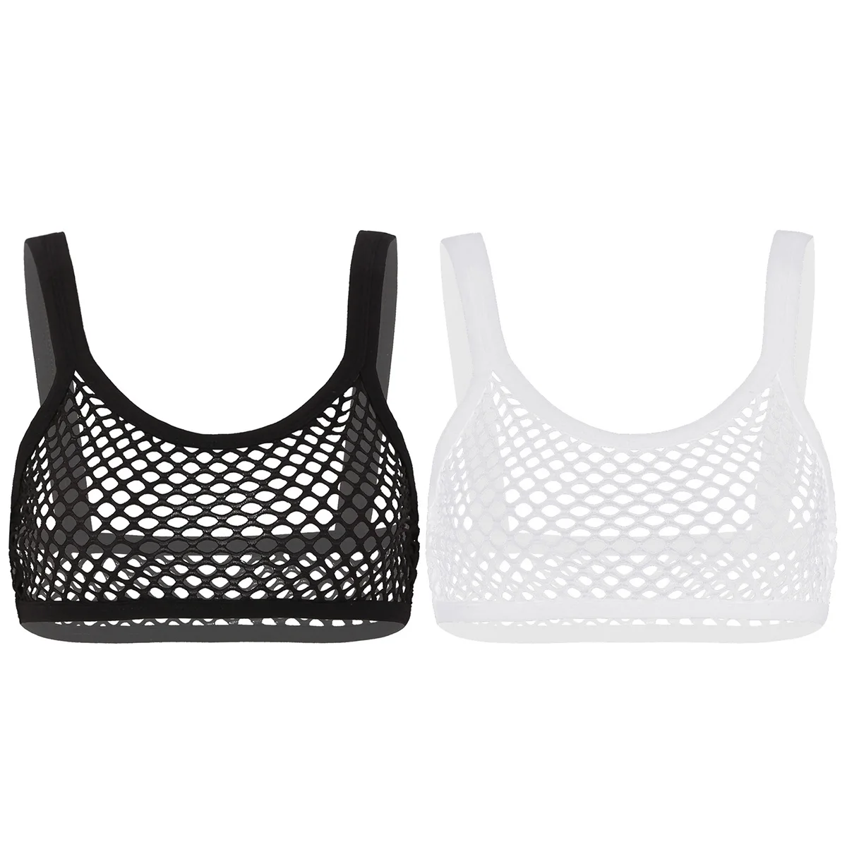 Womens Camisole Crop Tops Sexy Transparent Fishnet Mini Top Gym Party Tanks Sleeveless Hollow Out Vest Female Clubwear Tank Top