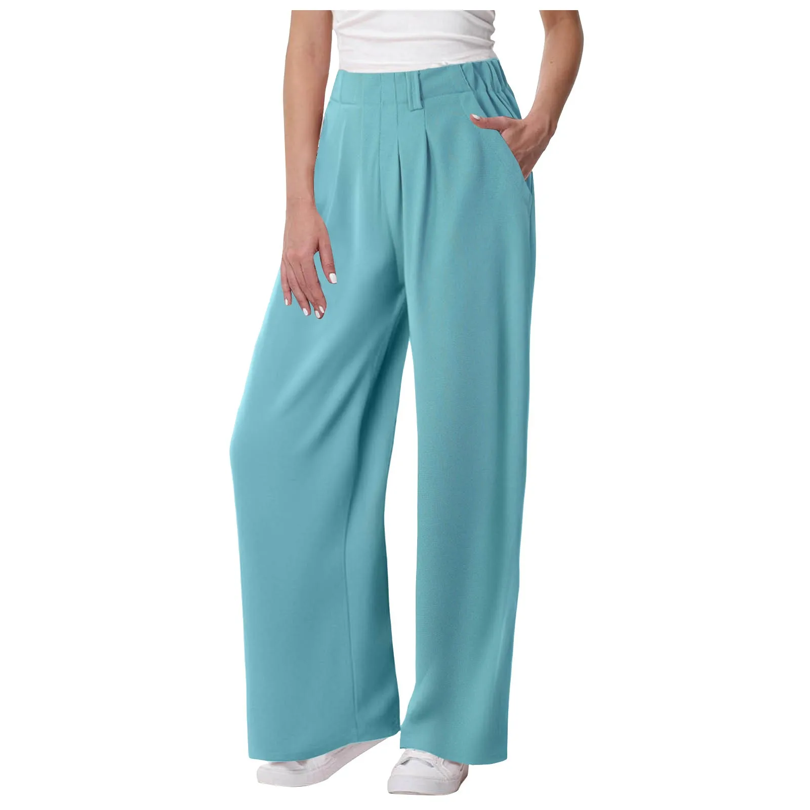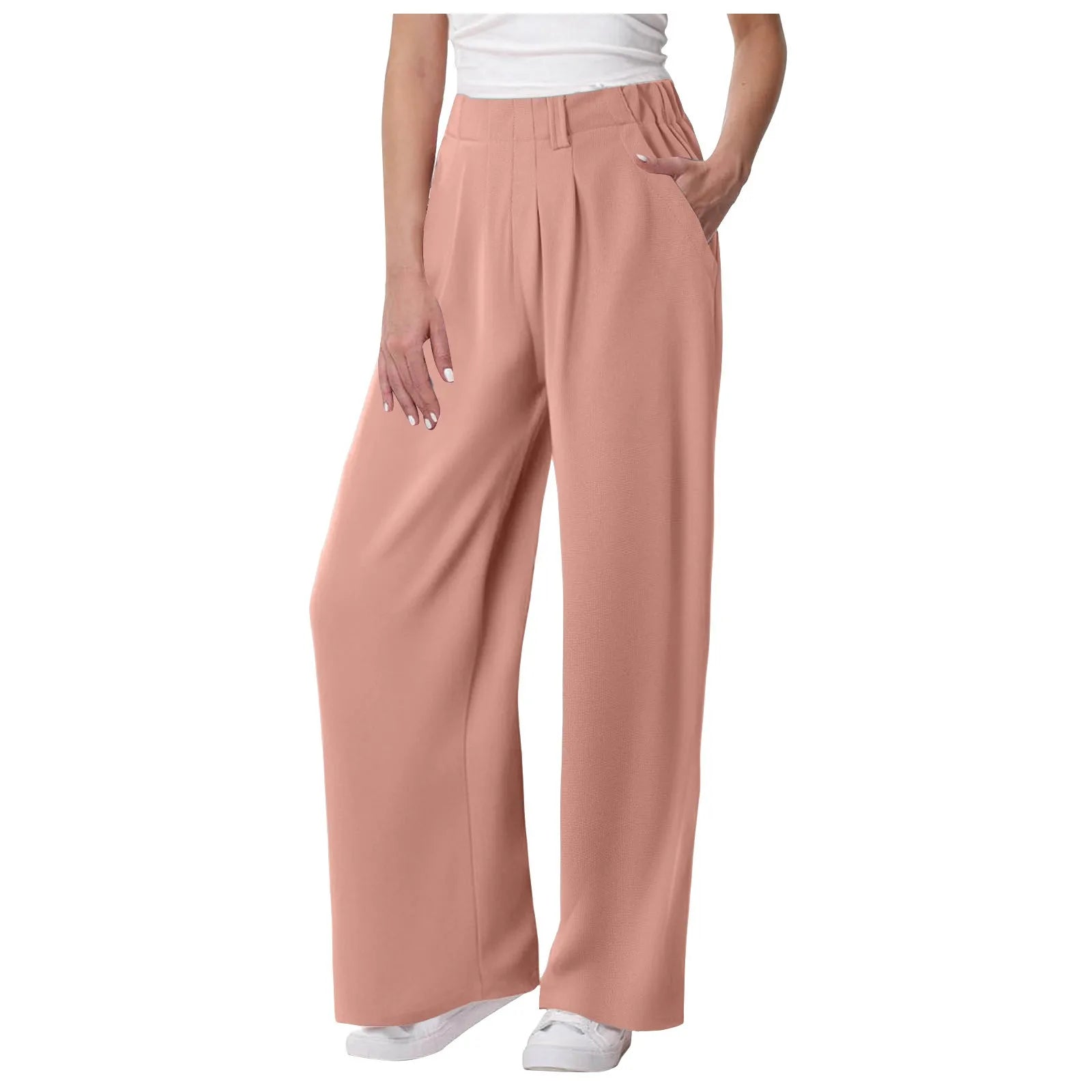 Womens Solid Color Straight Tube Loose Stretch Yoga Pants with Pockets Streetwear Waffle Palazzo Pants Women Joggers Baggy Pants