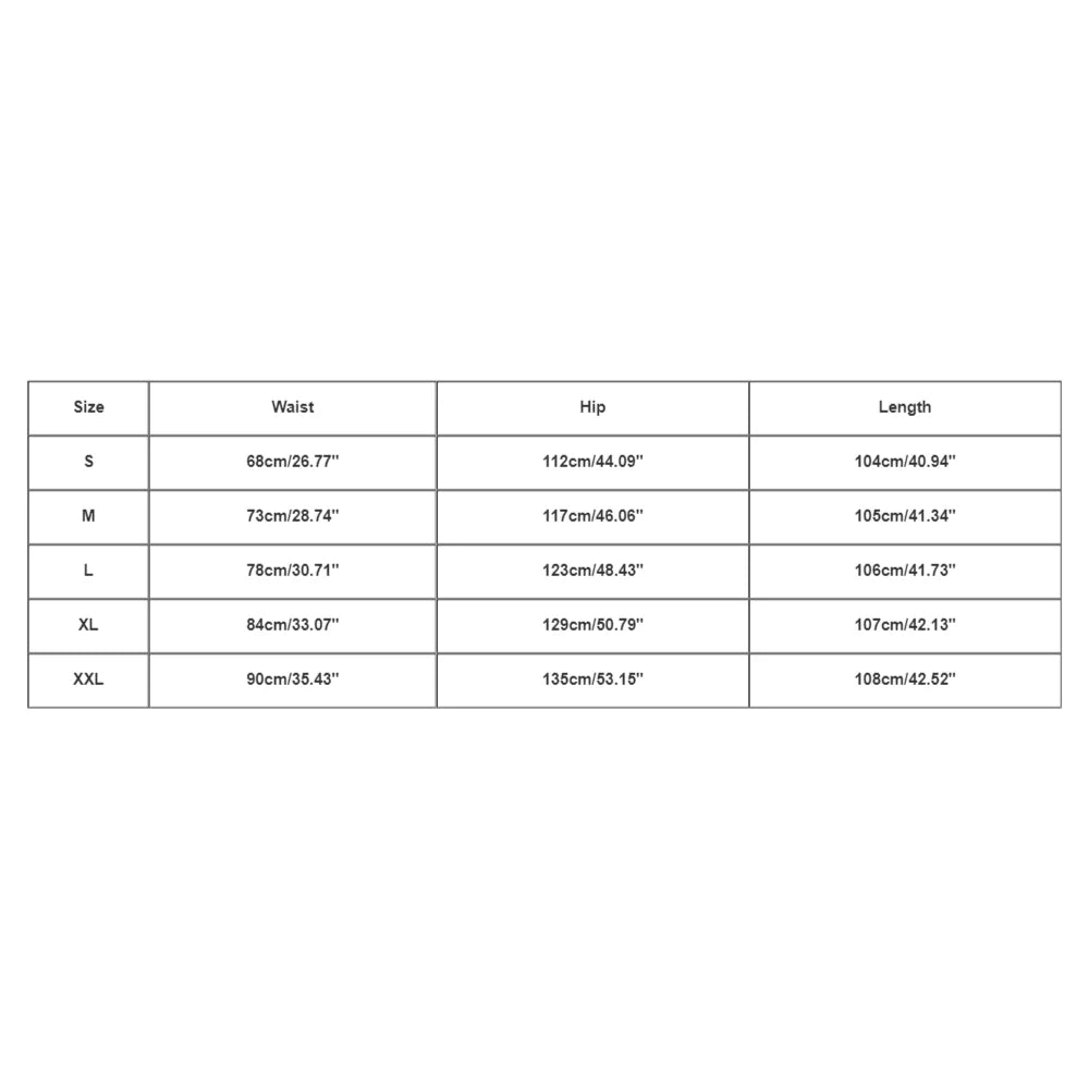 | Size:S | Waist:68cm/26.77'' | Hip:112cm/44.09'' | Length:104cm/40.94'' |