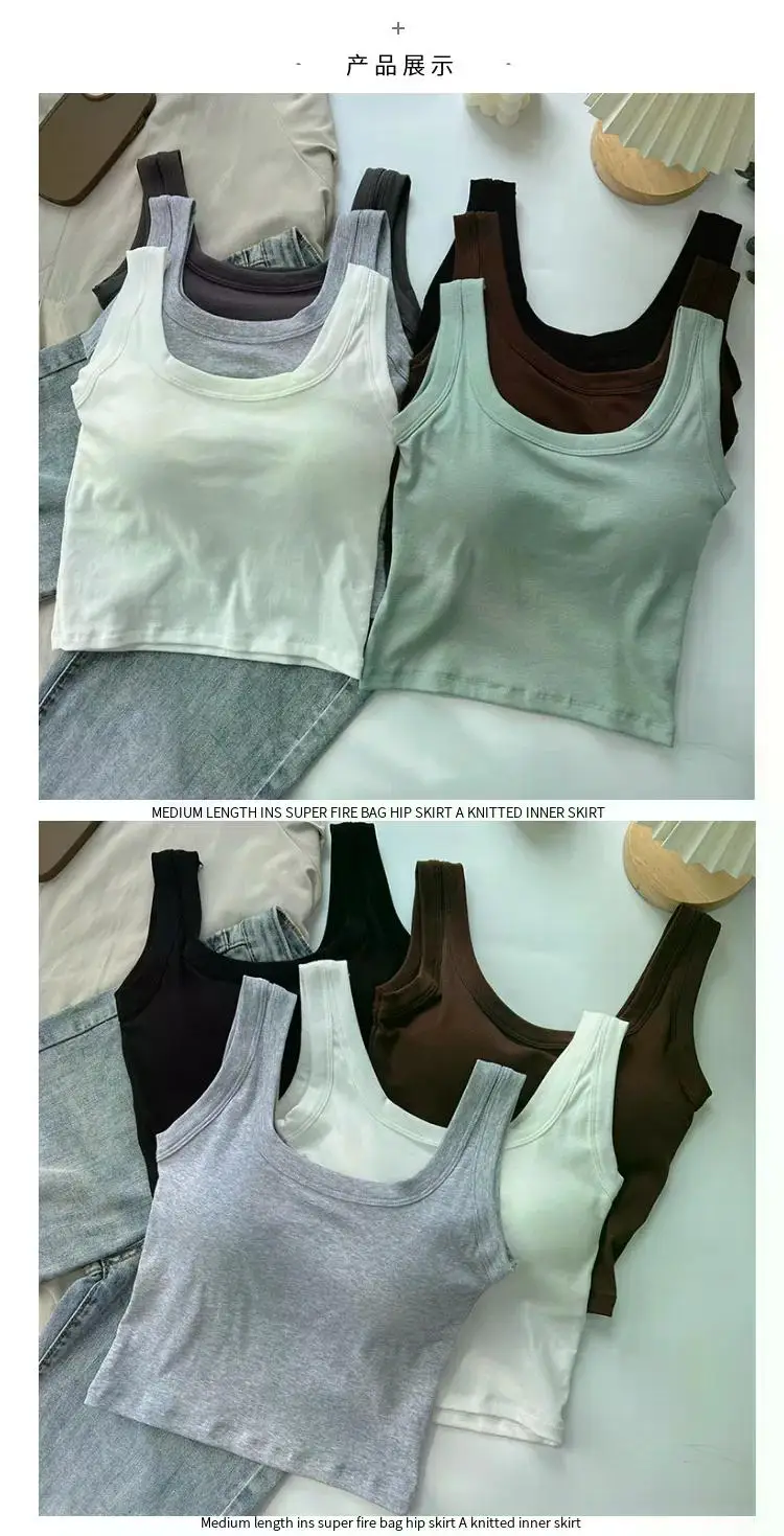 Women's Vest One-Piece No Steel Ring Cotton Chest Pad Wide Shoulder Sports Yoga Vest Underwear Black White Bra Tank Top Women